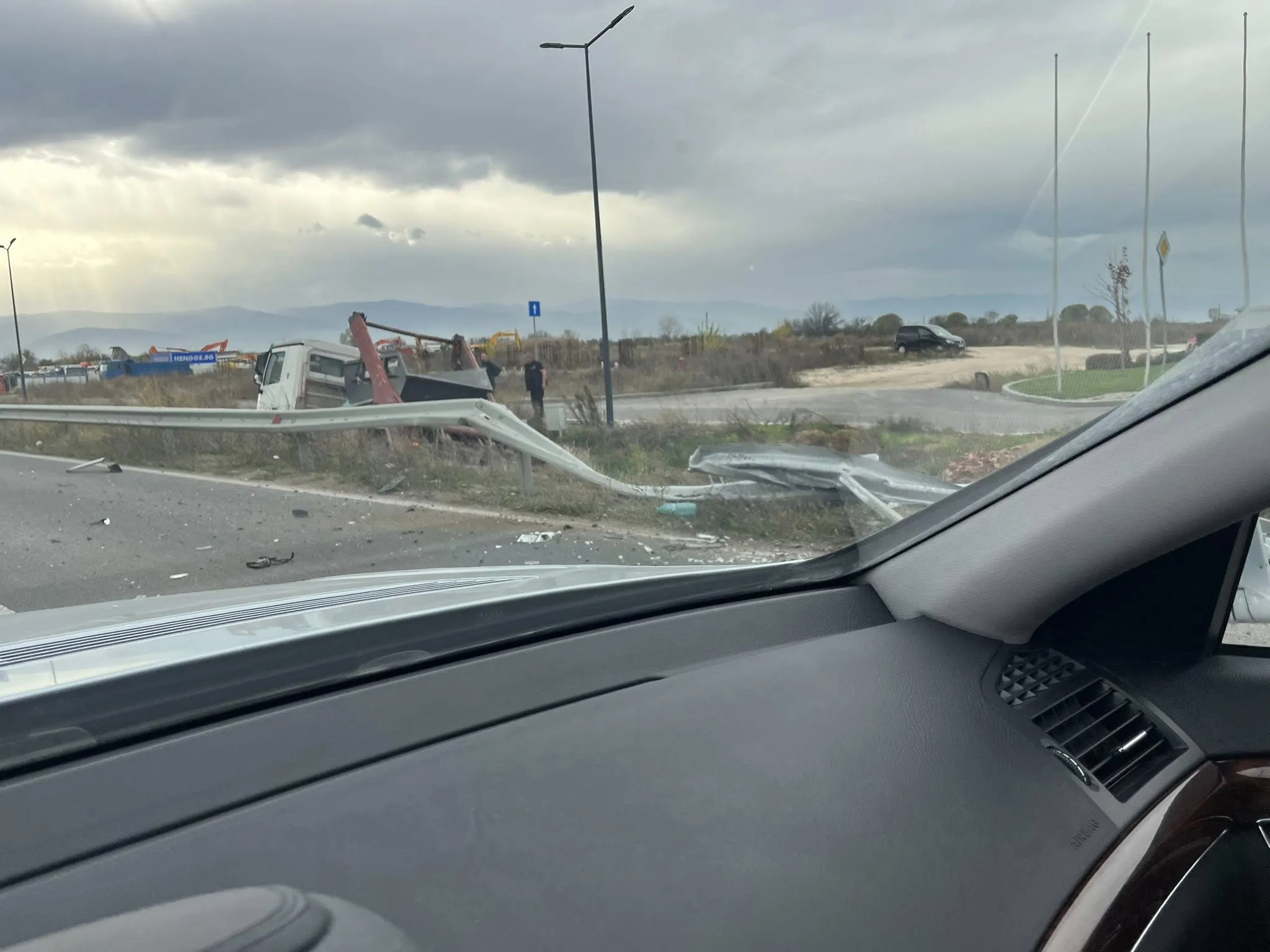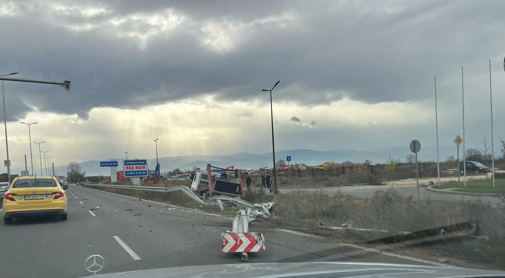 Камион е излязъл от пътното платно и се е врязал в мантинела.