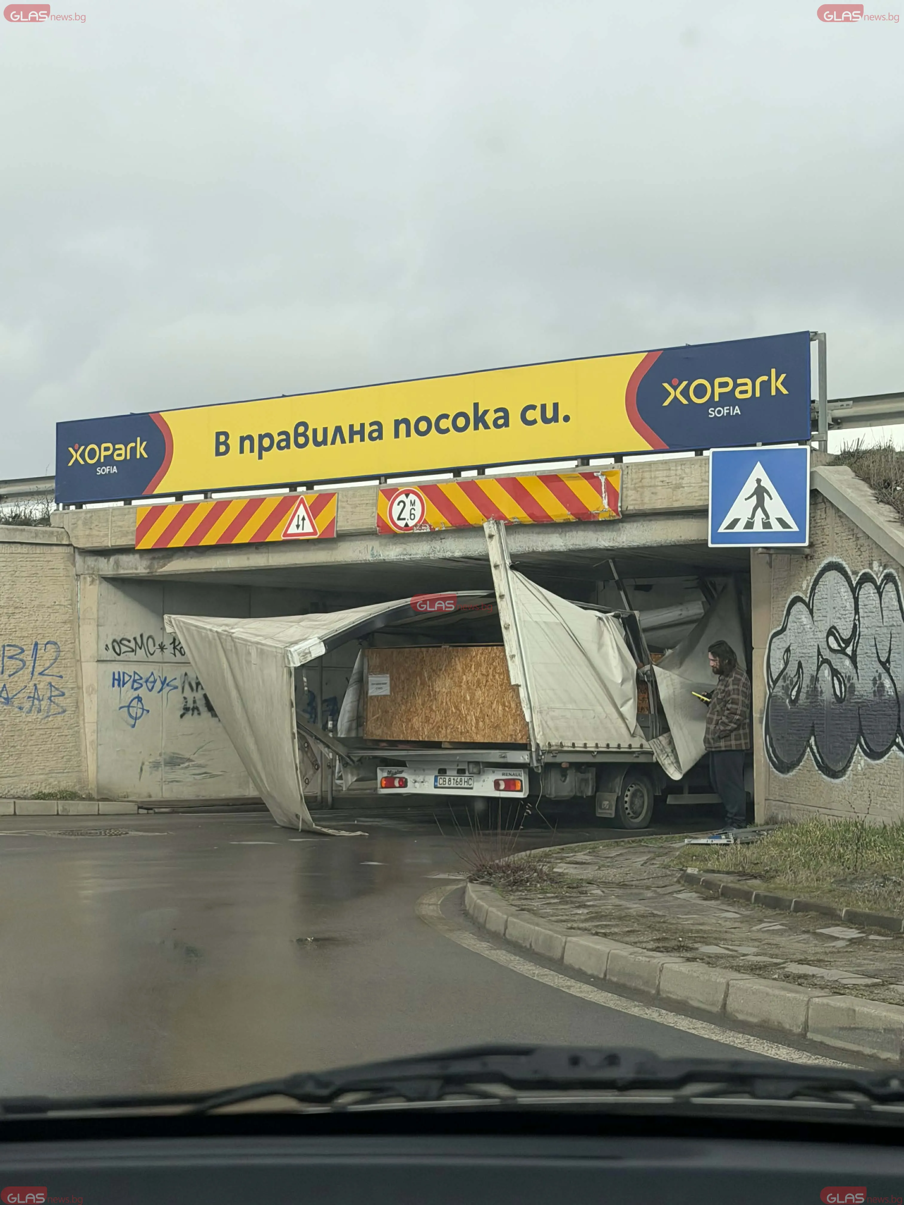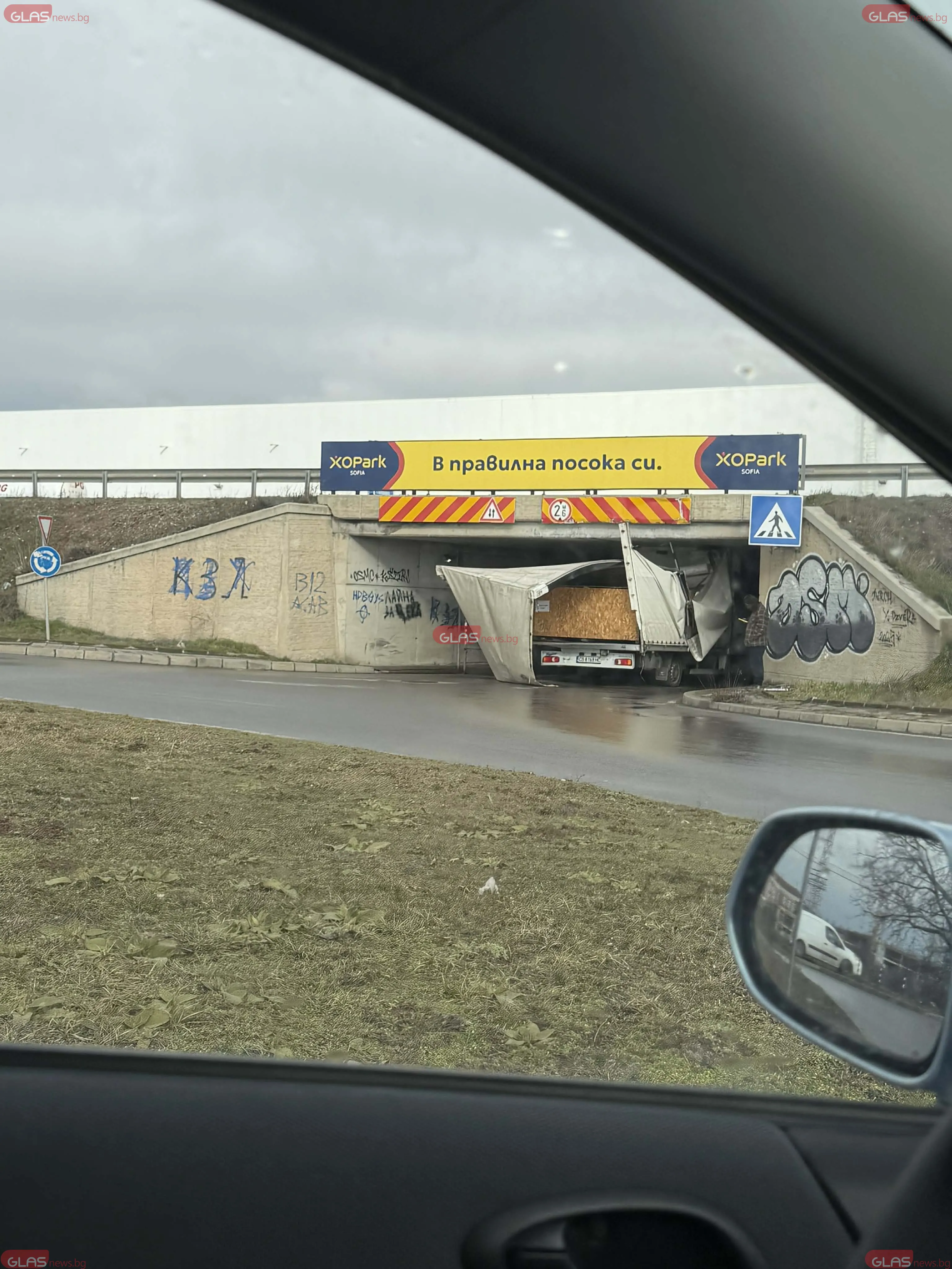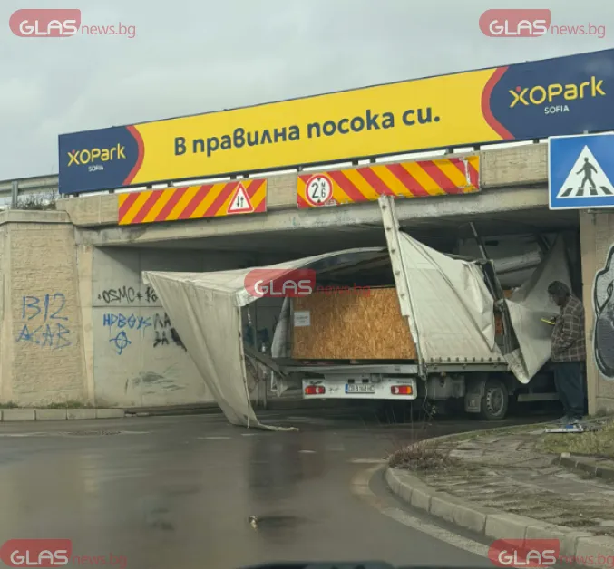 Камион заседна в тунела към XO Park в посока кръговото за Долни Богров и затрудни движението в района.