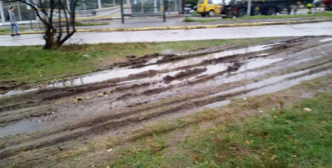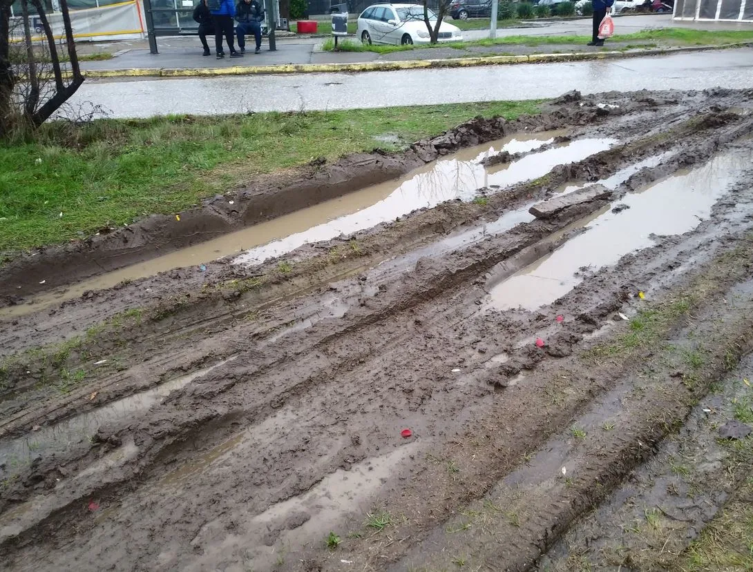 Кал, дълбоки коловози и изкоренена трева… и всичко това на метри от спирка на градския транспорт. Това показват снимките, с които Любомира Любомирова илюстрира ситуацията при спирка 801, намираща се в района на колелото при „Луи Айер“ в кв. "Манастирски ливади.