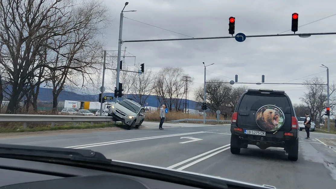 Единият от автомобилите се е озовал върху мантинелата, което се вижда от кадри, публикувани в социалната мрежа Facebook.