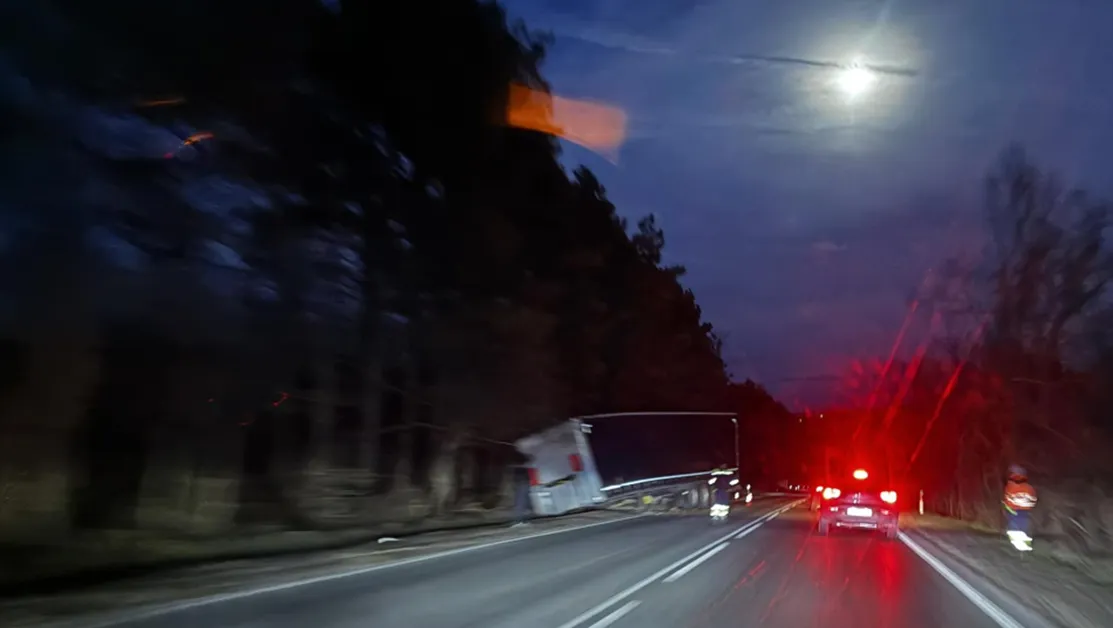 Обърнато тежкотоварно ремарке затрудни движението по пътя Русе-Бяла. Произшествието е станало този следобед.