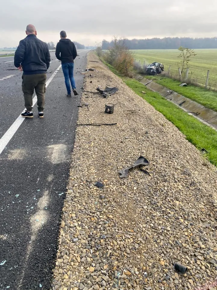 На други кадри, споделени в социалните мрежи - се вижда изключително размазан автомобил на пътното платно - друг е в канавката до пътя.