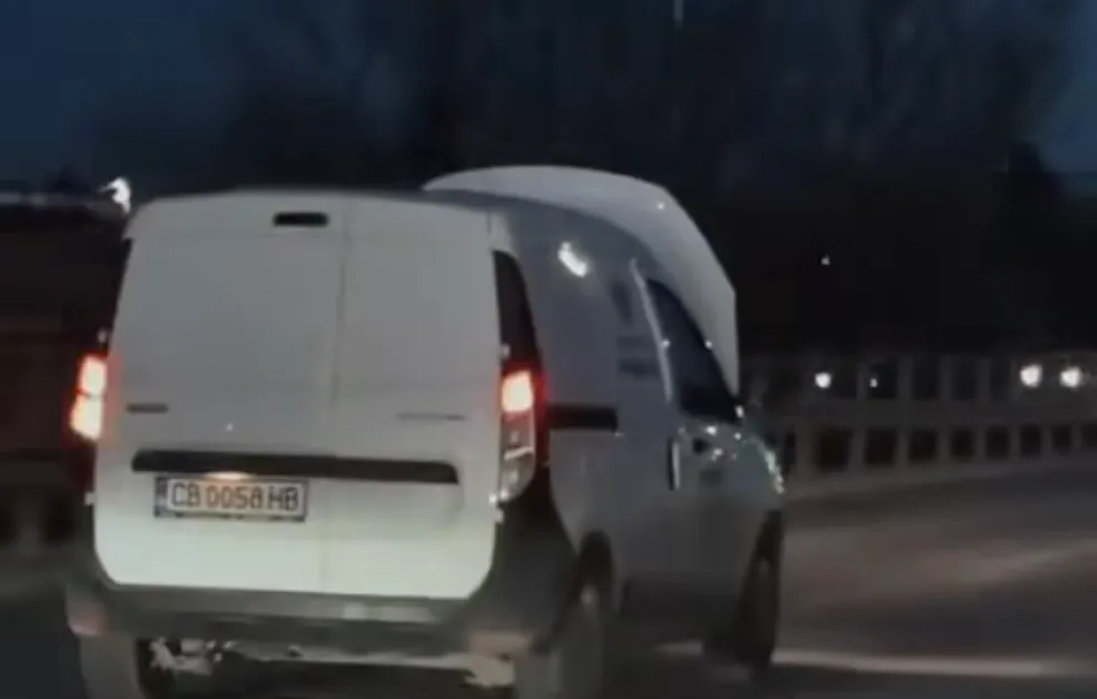 Автомобил на "Български пощи" бе заснет в куриозна сцена - с отворен капак по време на движение.