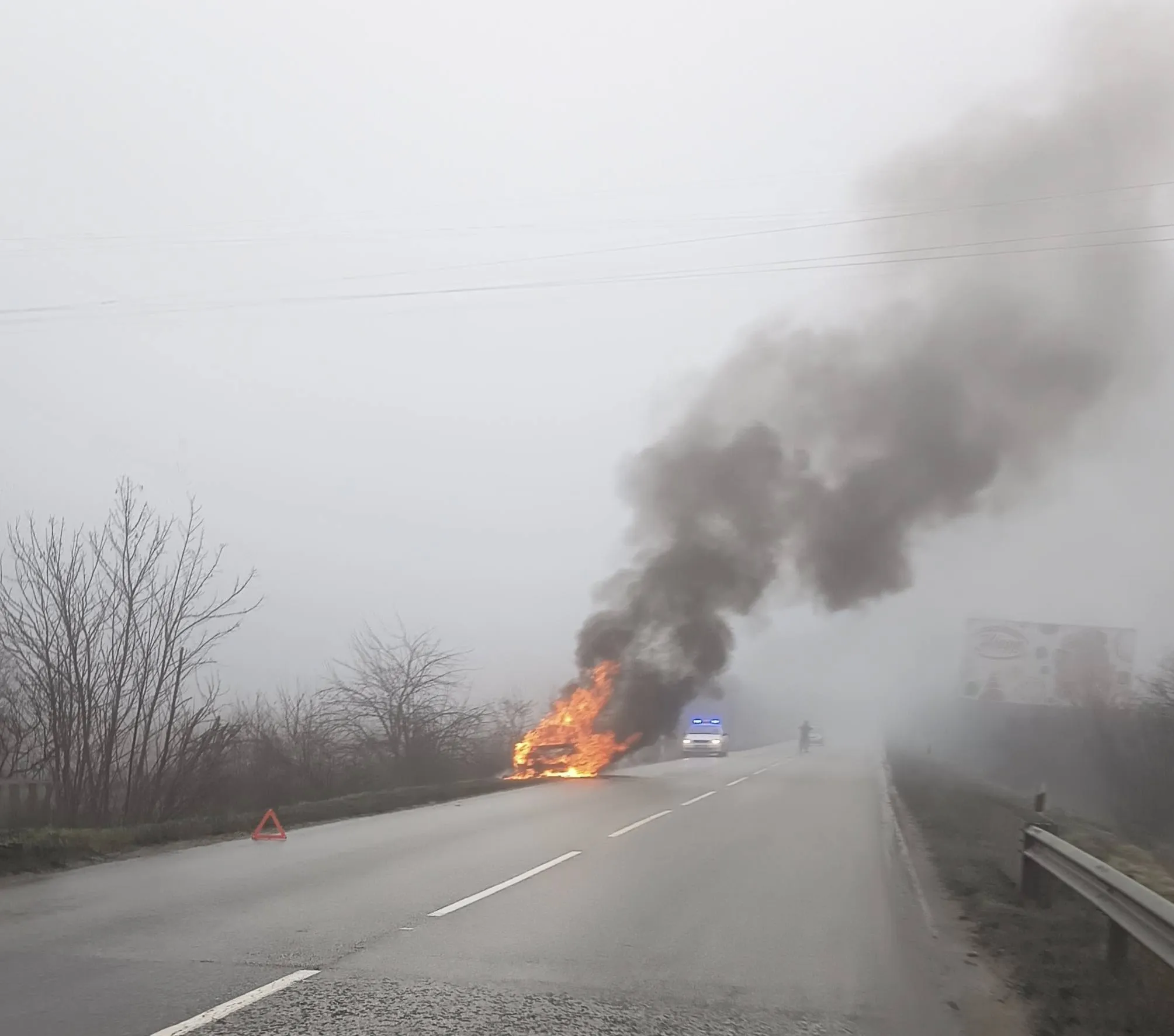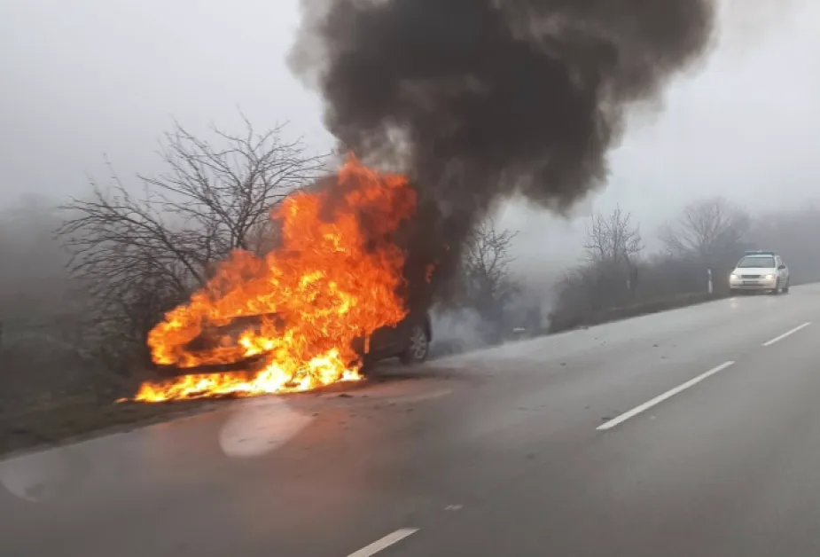 Лек автомобил е избухнал в пламъци преди село Ново село, в района на Балван, област Ловеч.