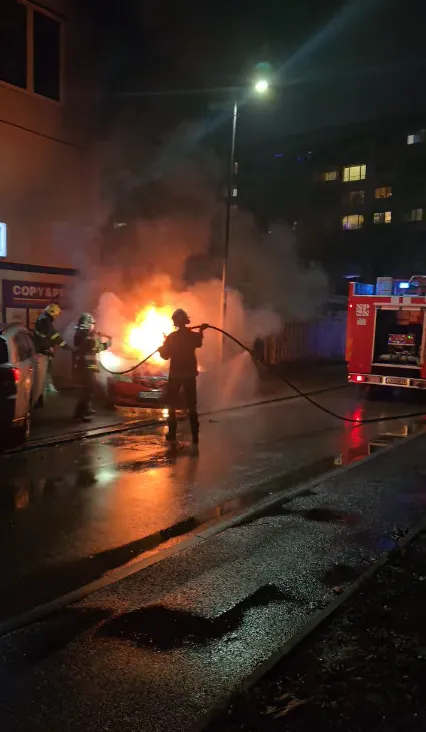 Кола е избухнала в пламъци тази вечер в столичния квартал "Дружба" 1. Това става ясно от видео, публикувано в социалната мрежа Facebook.