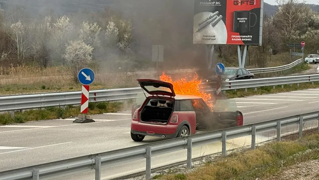 Лек автомобил е изгорял при внезапен пожар на пътя преди село Владая.