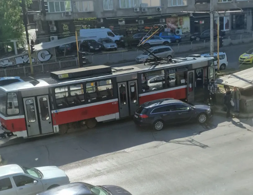 Катастрофа между лек автомобил и трамвай стана днес в София. Инцидентът е на кръстовището на бул. „Ситняково“ и ул. „Оборище“.