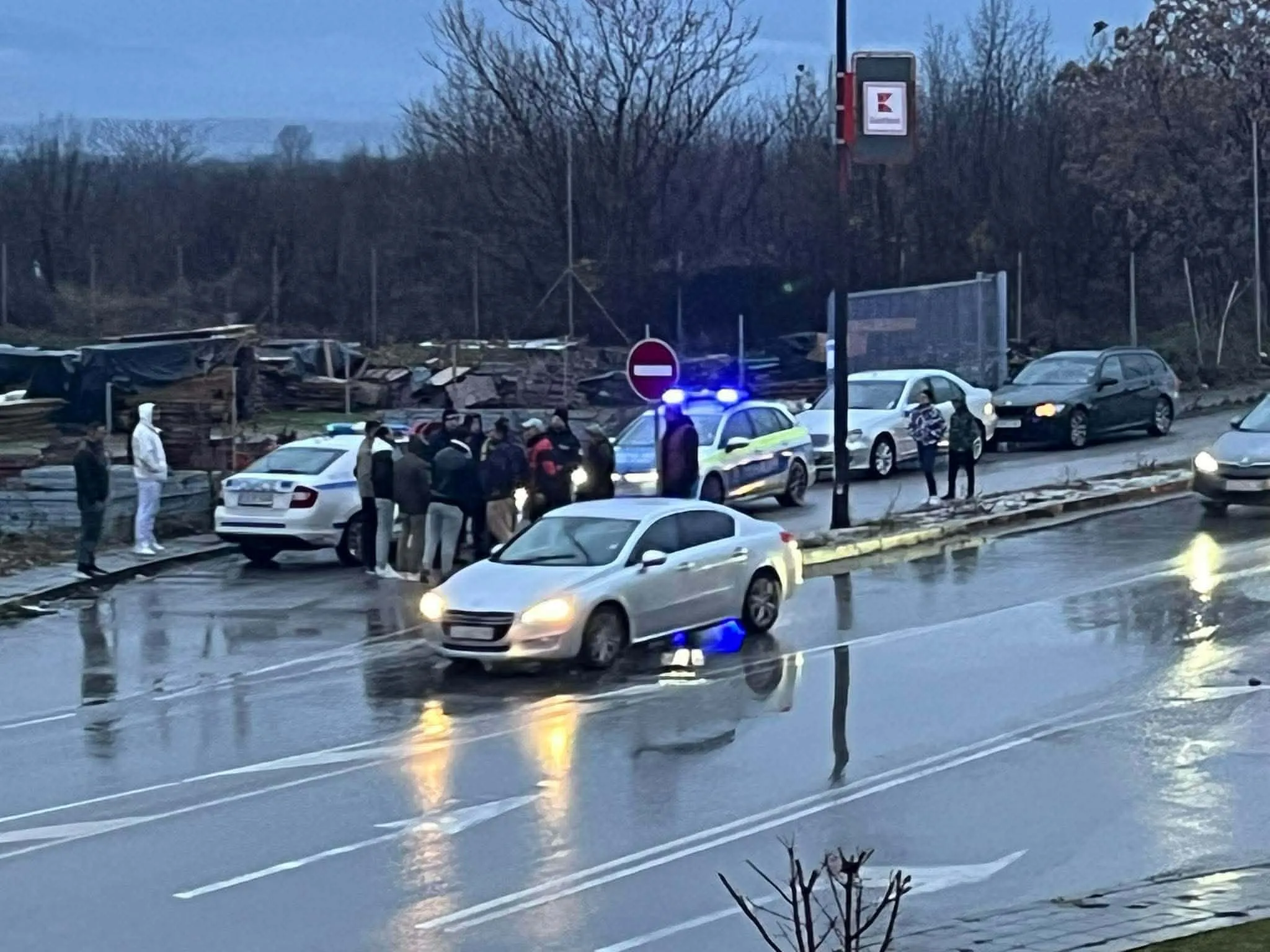 На мястото на инцидента се е струпала група хора, вероятно роднини или познати на шофьора. Няма сериозни затруднения в движението вследствие на катастрофата.