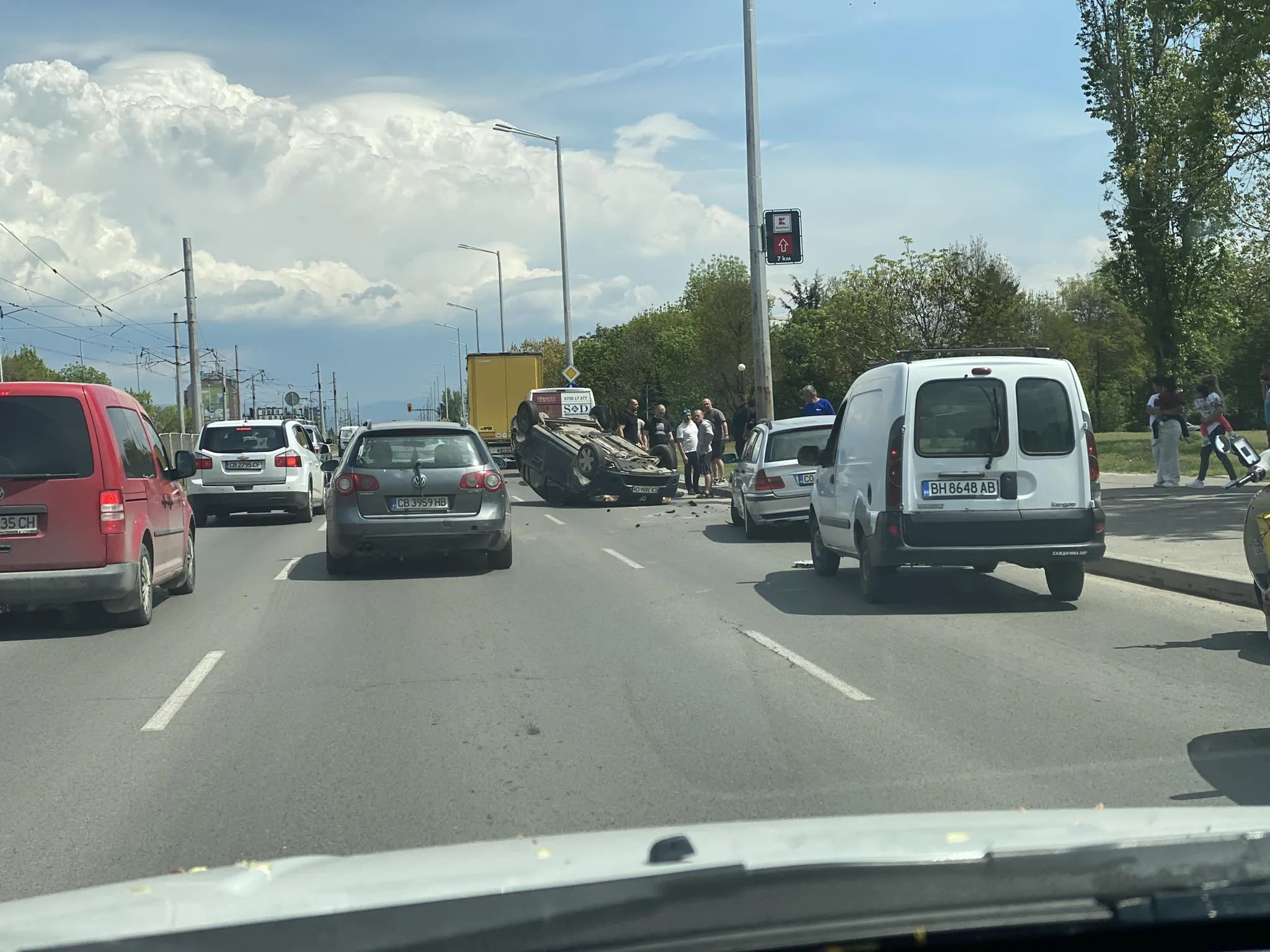 Катастрофа стана на „Ботевградско шосе“ в София днес. Кола се е обърнала по таван. Инцидентът е в посока Кремиковци.