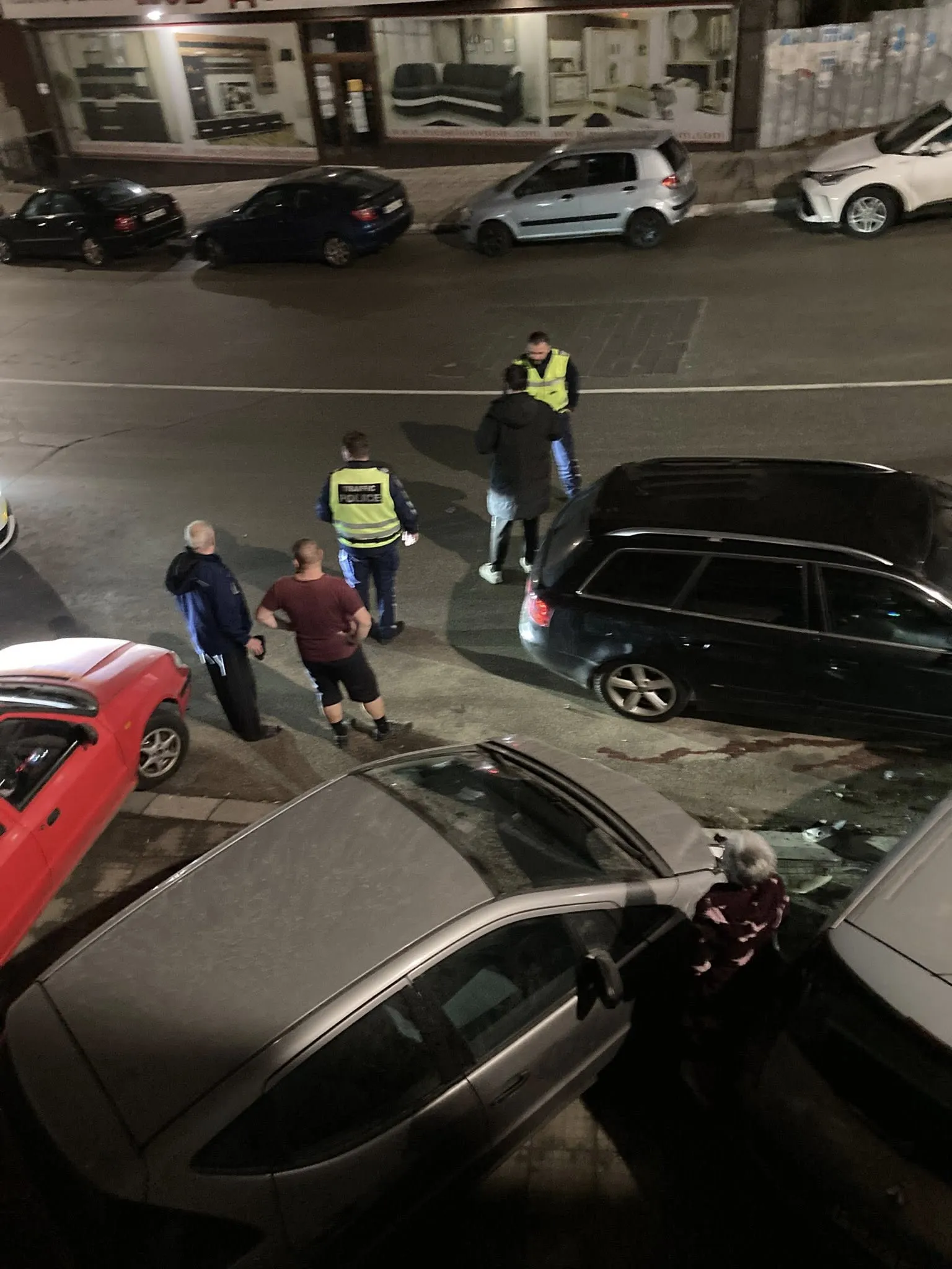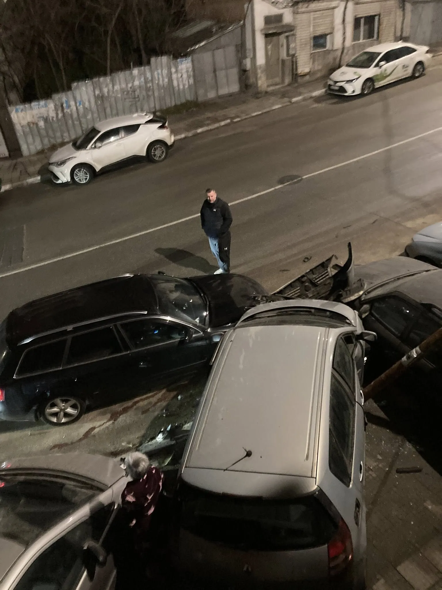 Гергана Михайлова - жена, пред чийто блок става инцидентът - пише във Facebook, че са пострадали 3 семейства - най-вероятно визирайки, че три семейни коли са били ударени. Четвърта кола е останала "без стъкла", пише дамата в публикацията си, прилагайки кадри.