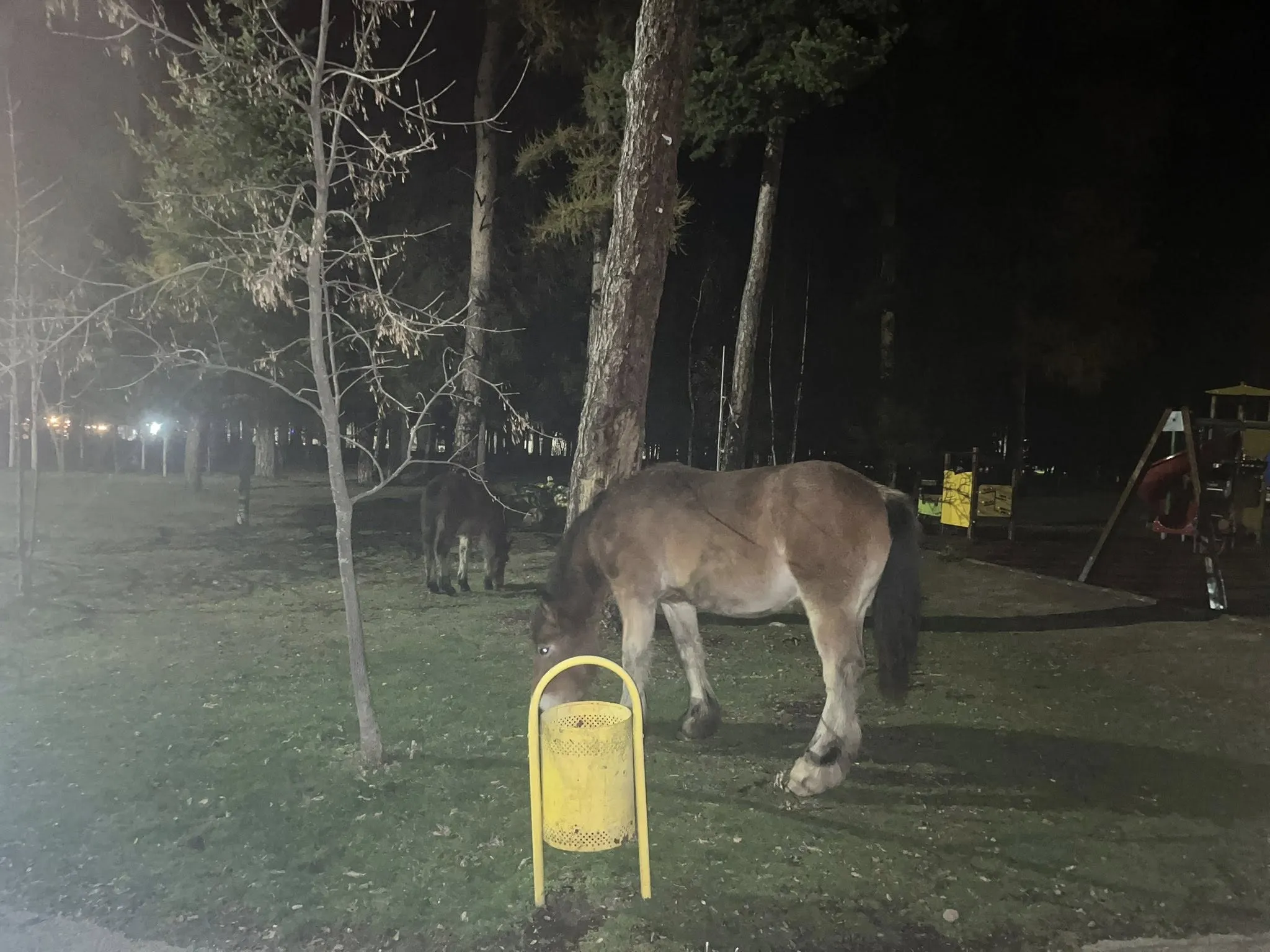 Според очевидци, конете обикалят парка още от сутринта, като присъствието им предизвика смесица от усмивки и притеснение сред местните.