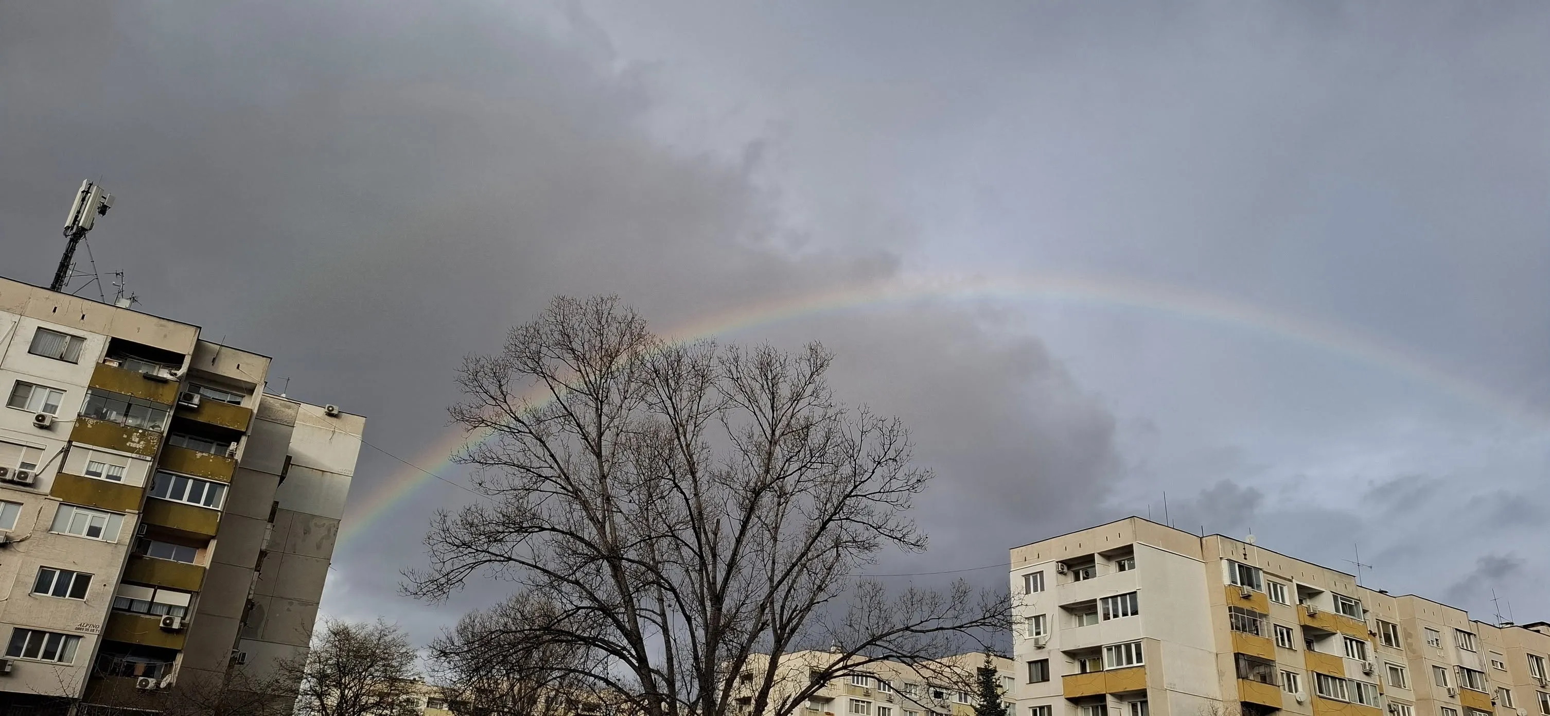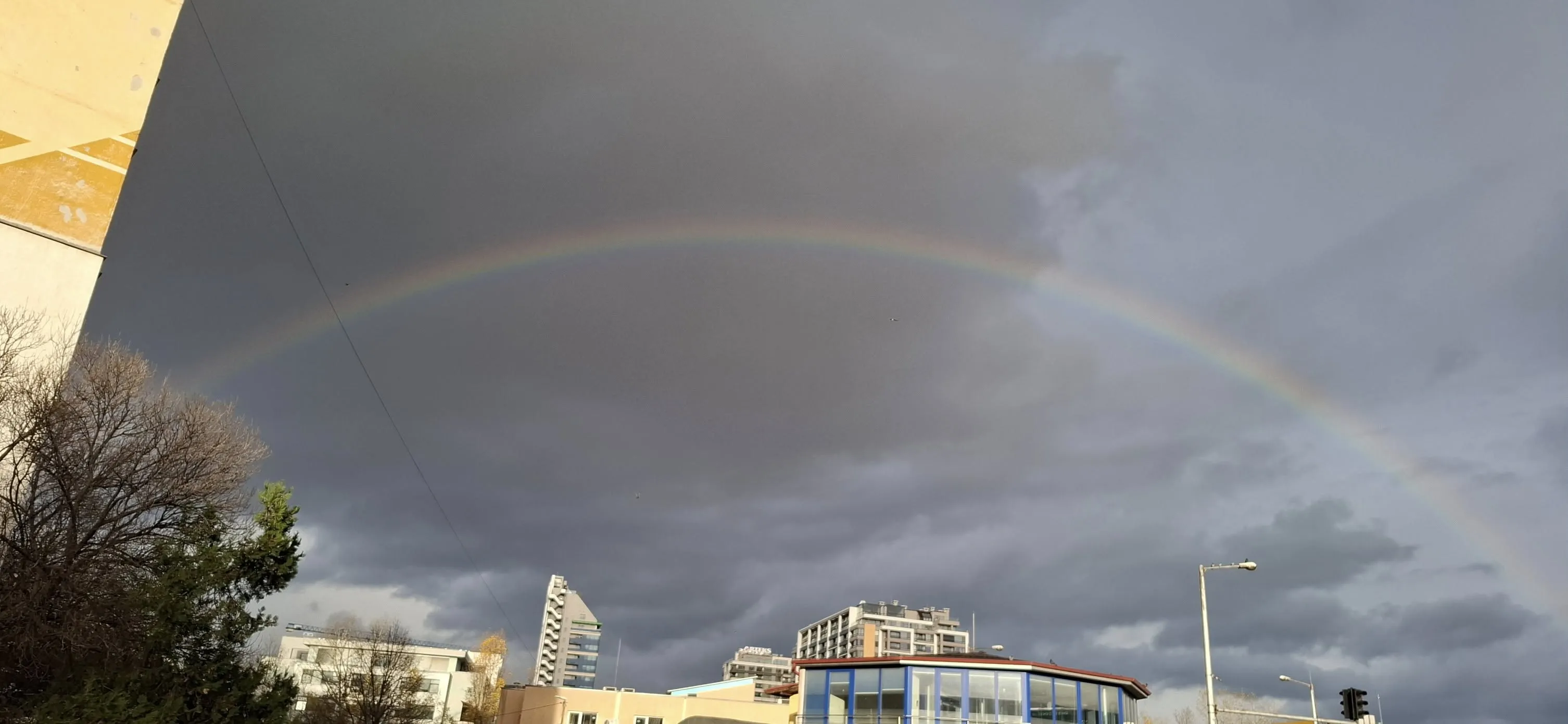 Над столицата се появи ярка дъга, която се откроява силно на фона на тъмните облаци и панелните блокове. Красиви кадри, уловили шарената линия в небесния свод, бързо-бързо се появиха в социалните мрежи.