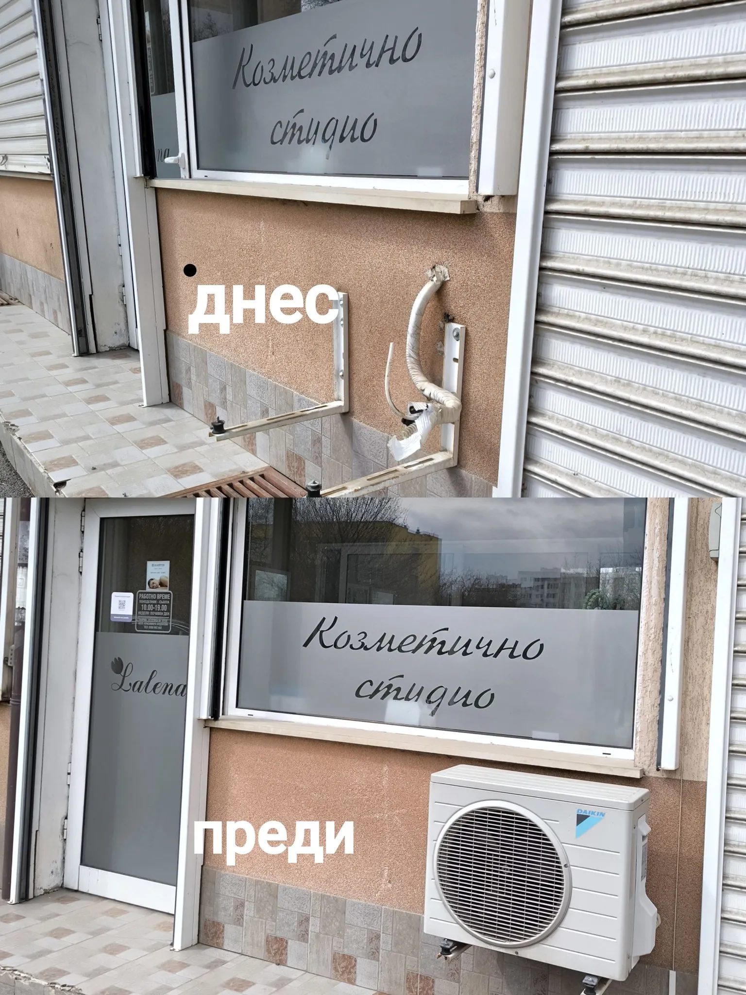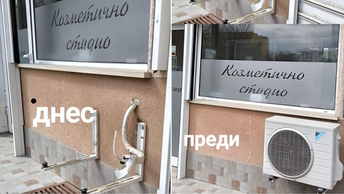 В публикация в социалната мрежа Facebook от 22-и март Красимира Андонова споделя, че външното тяло на климатик е било демонтирано и задигнато от фасадата на козметично студио.