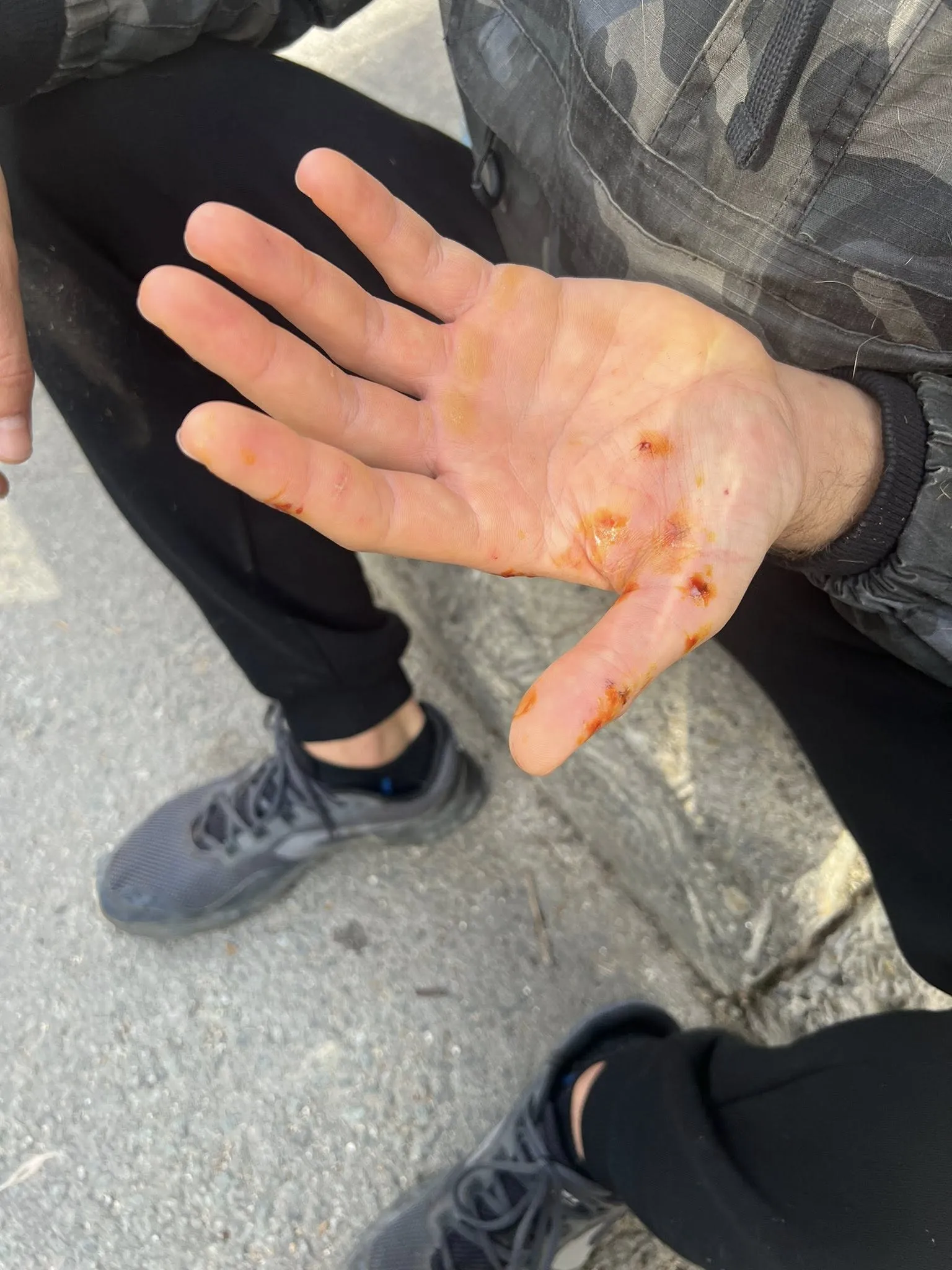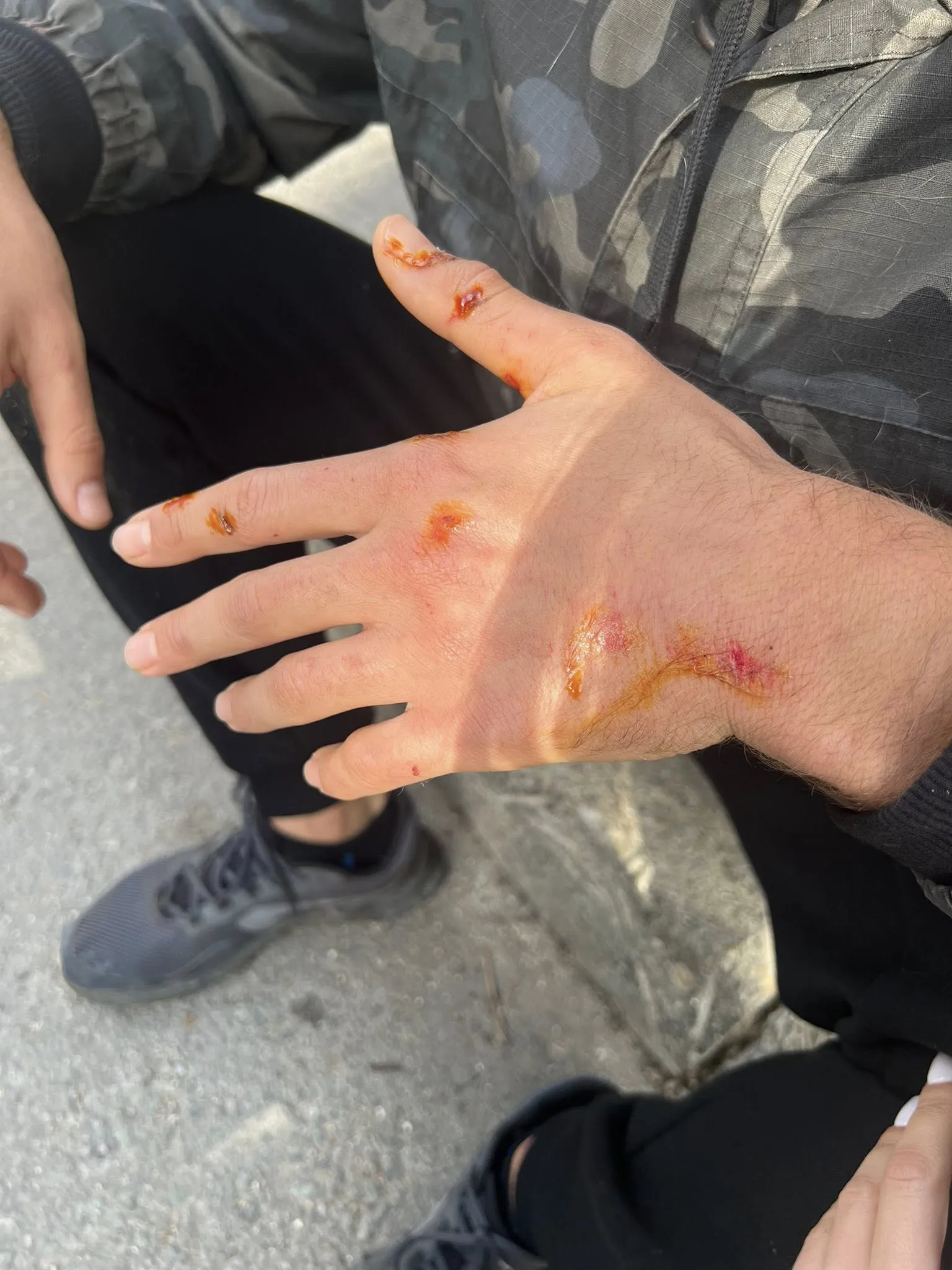 Той сподели и снимки - на рани по ръцете си, както и на покойното му кученце.