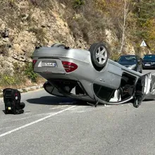 Кола се обърна по таван в Смолянско СНИМКА