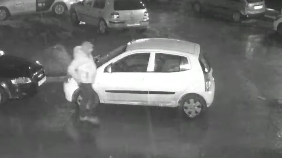 Кадрите показват мъж, който минава от кола на кола и пробва дали автомобилите са отключени. Записите не показват изрично мъжът да пребърква някой автомобил, но авторът на видеото твърди, че шест автомобила вече са изгорели.