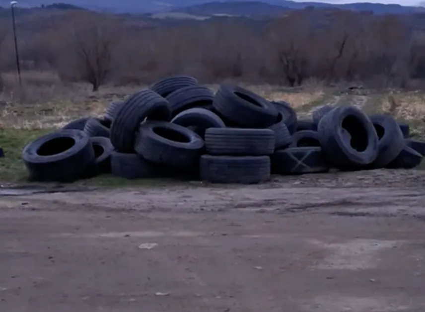 Захвърлени гуми станаха проблем в кюстендилското село Блажиево, което до дни избира нов кмет след смъртта на дългогодишния градоначалник през ноември 2025 година.
