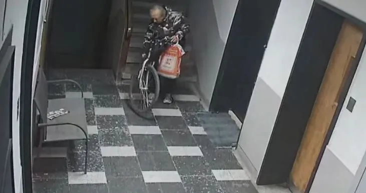 Потърпевшата Роси Кафеджиева споделя, че велосипед е бил задигнат от висок етаж на жилищна сграда в квартал „Хиподрума“ в началото на тази седмица. Охранителните камери на сградата са уловили момента, в който гражданинът излиза от входа, влачейки колелото. Кафеджиева отбелязва, че въпросният е мъкнал цели 10 етажа ценната вещ по стълбите.