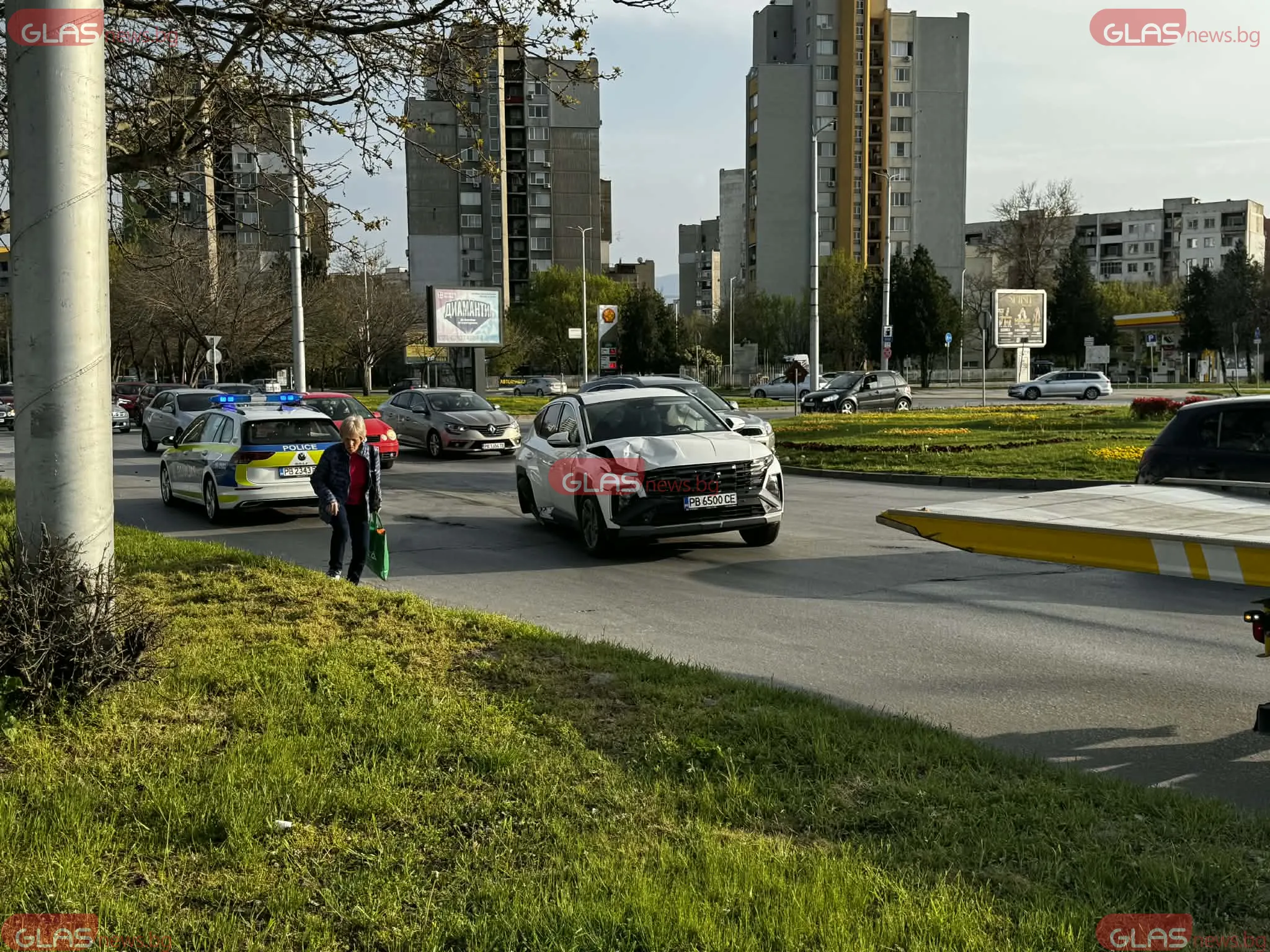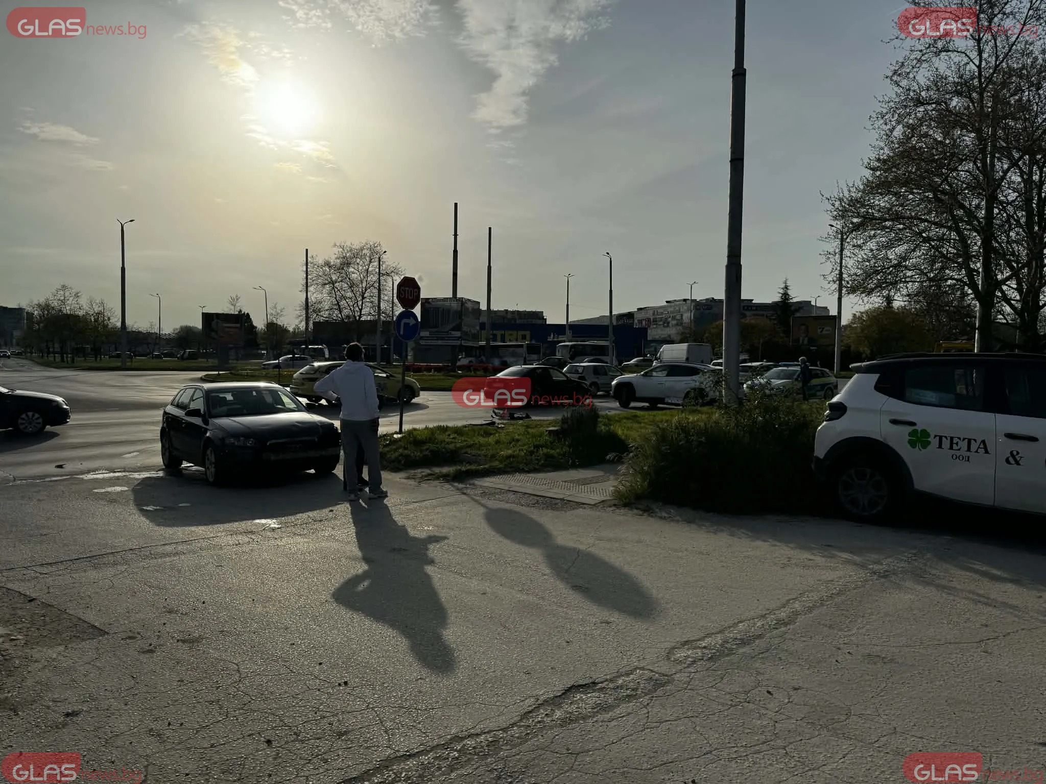 Катастрофа е станала на натовареното кръгово кръстовище до хотел SPS в Пловдив, в района на магазин „Метро“, видя репортер на GlasNews. По първоначална информация са се ударили два автомобила, като единият от тях - черното „Ауди“, е управлявано от жена.