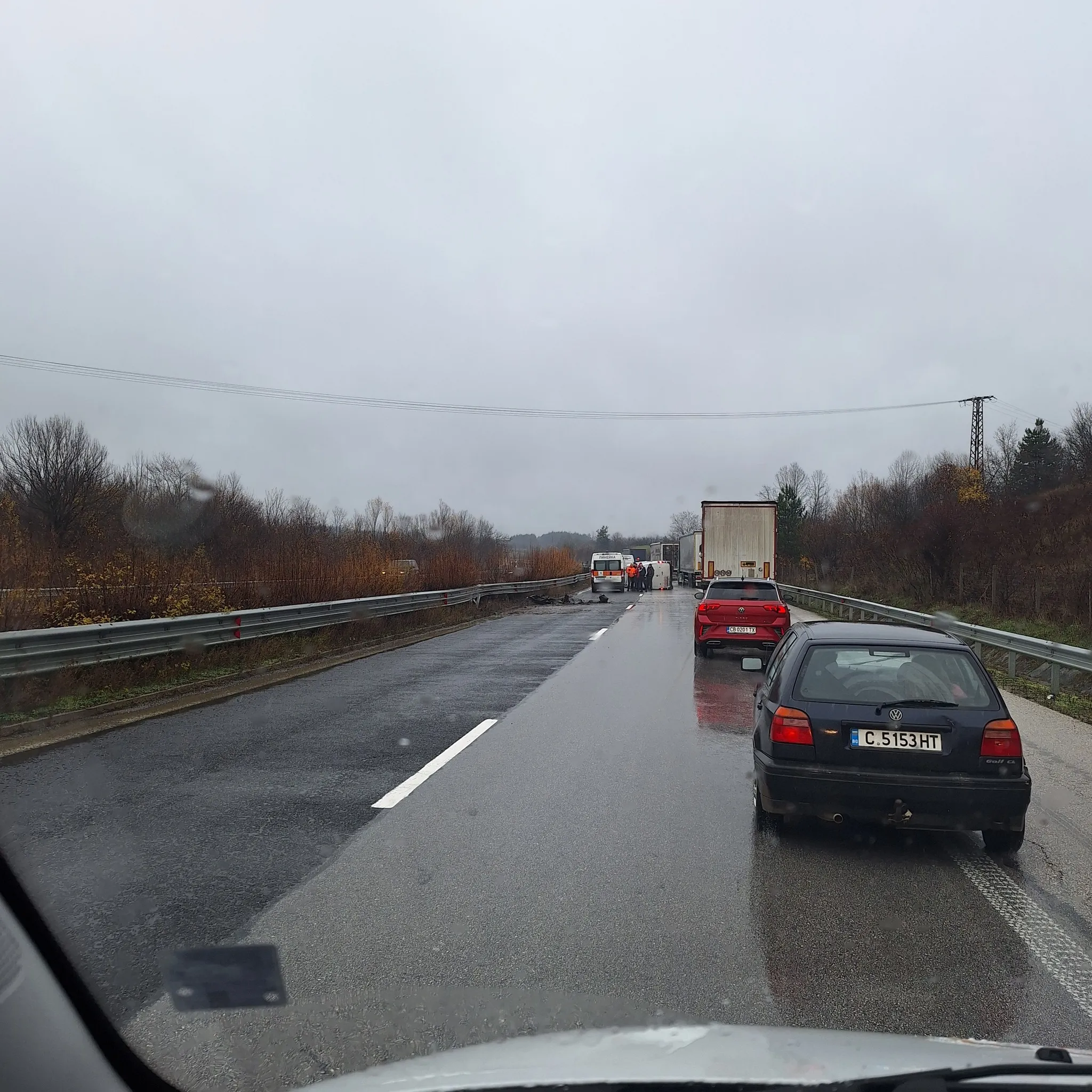 Движението се осъществява в аварийната лента. Трафикът се регулира от екип на "Пътна полиция". Шофирайте с повишено внимание и съобразена скорост!