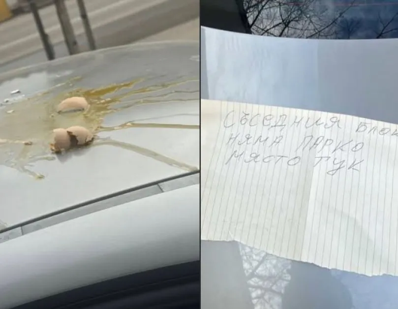 Яйца били строшени по тавана на сивичък автомобил, на находката попаднал собственикът ѝ край блок 23 в „Малинова долина“. Изглежда, това не е първата спорна ситуация между водачи в района, защото друга шофьорка излиза с гневно обръщение към неизвестния вандал.