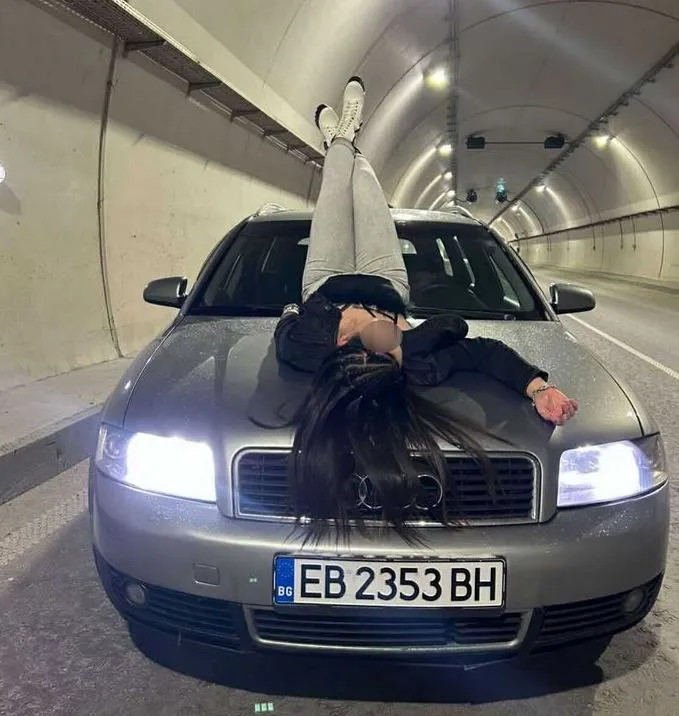 Млада жена си направи същинска фотосесия, докато колата ѝ била спряна в тунел на наша магистрала.