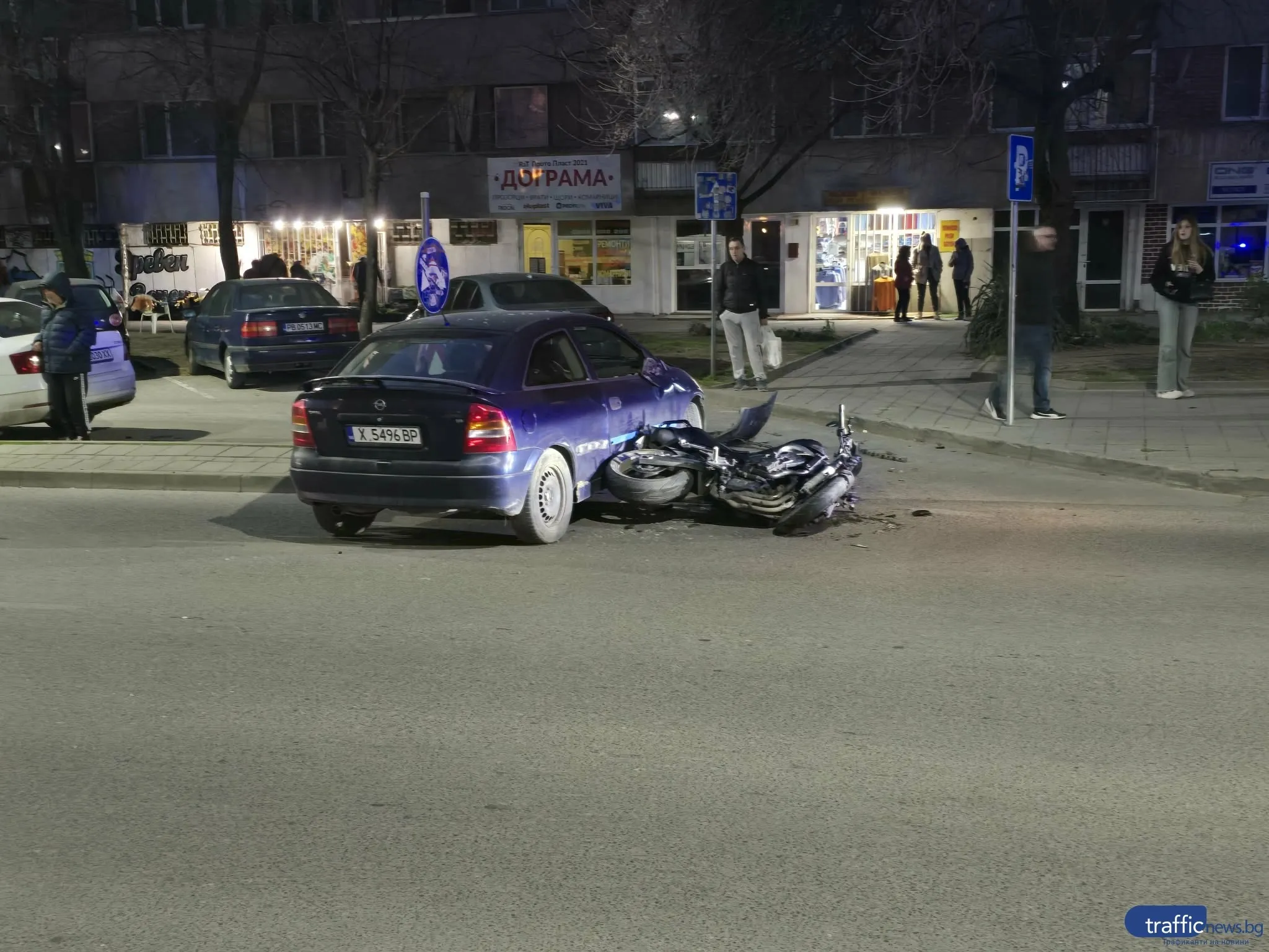 Шофьорът на автомобила Опел Астра се е движил по ул. "Петко Д. Петков" в посока бул. "Мария Луиза". Той тръгва да прави ляв завой в локалния паркинг, а в обратната посока се е движил моторист, който се удря в колата.