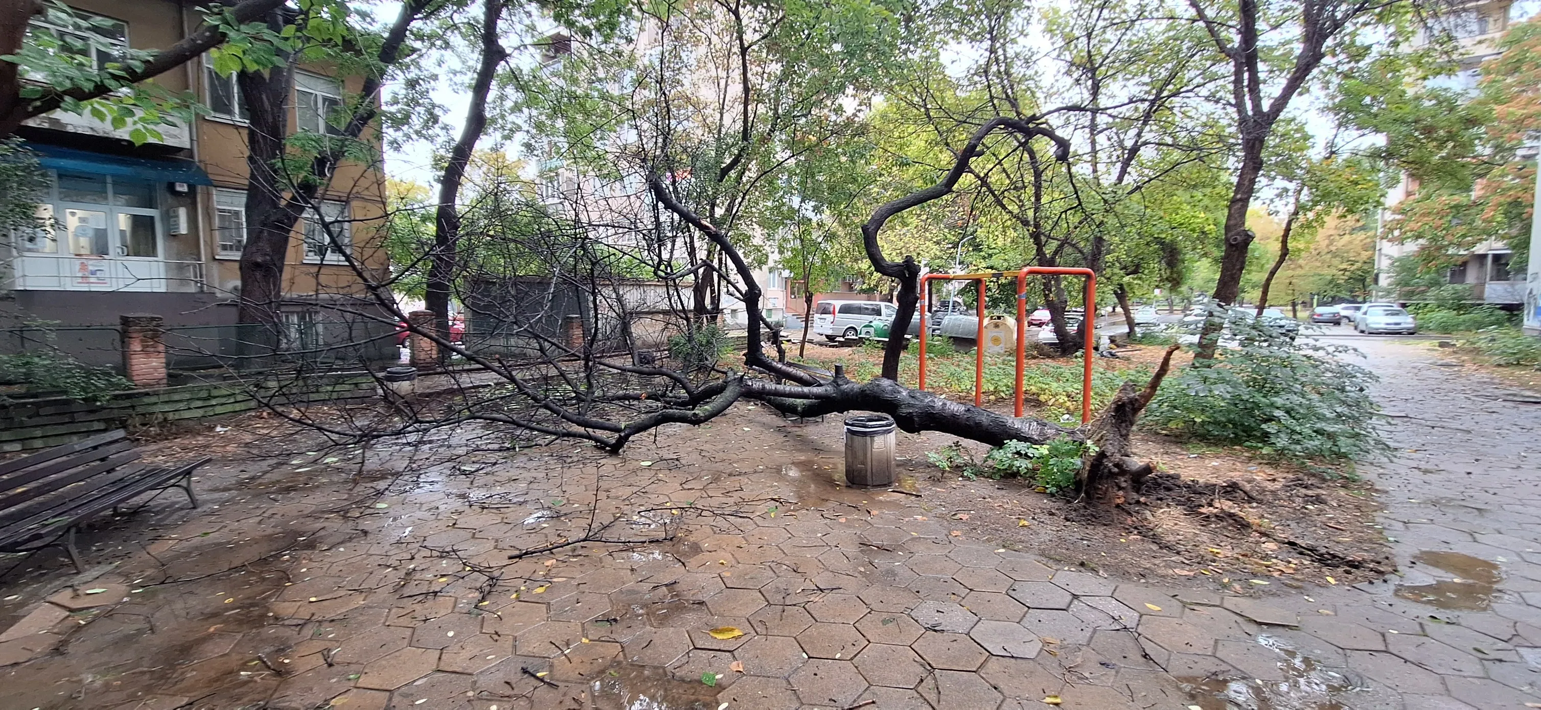 Голямо дърво се стовари в Пловдив. Паднало е върху алея пред ансамбъл „Тракия“, в близост до Кожния диспансер в квартал "Кючук Париж". Инцидентът е станал след проливните дъждове и силния вятър в града.