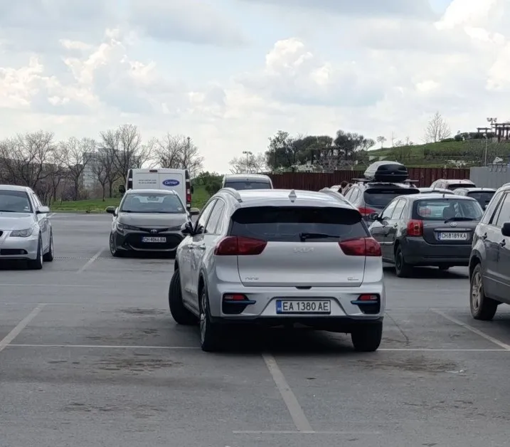 Електромобилът е разположен така, че заема средата на две паркоместа, като бронята му навлиза и в още две – общо четири. Кадърът бързо става популярен, след като е споделен от Павлета Абрашева.