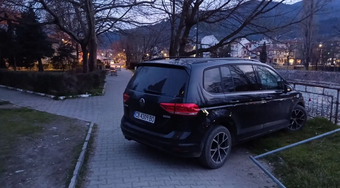 За абсурдното паркиране алармират асеновградчани, които се натъкнали на вана на алея в крайречния парк. Возилото препречвало пътечката, а за капак предницата му била и в мъничка зелена площ току-до парапета. Въобще – идилия.