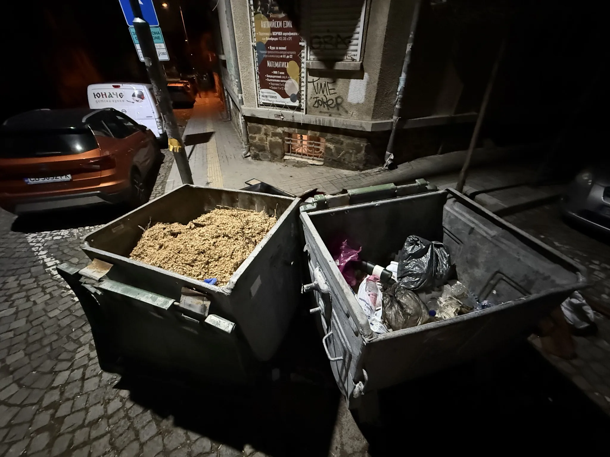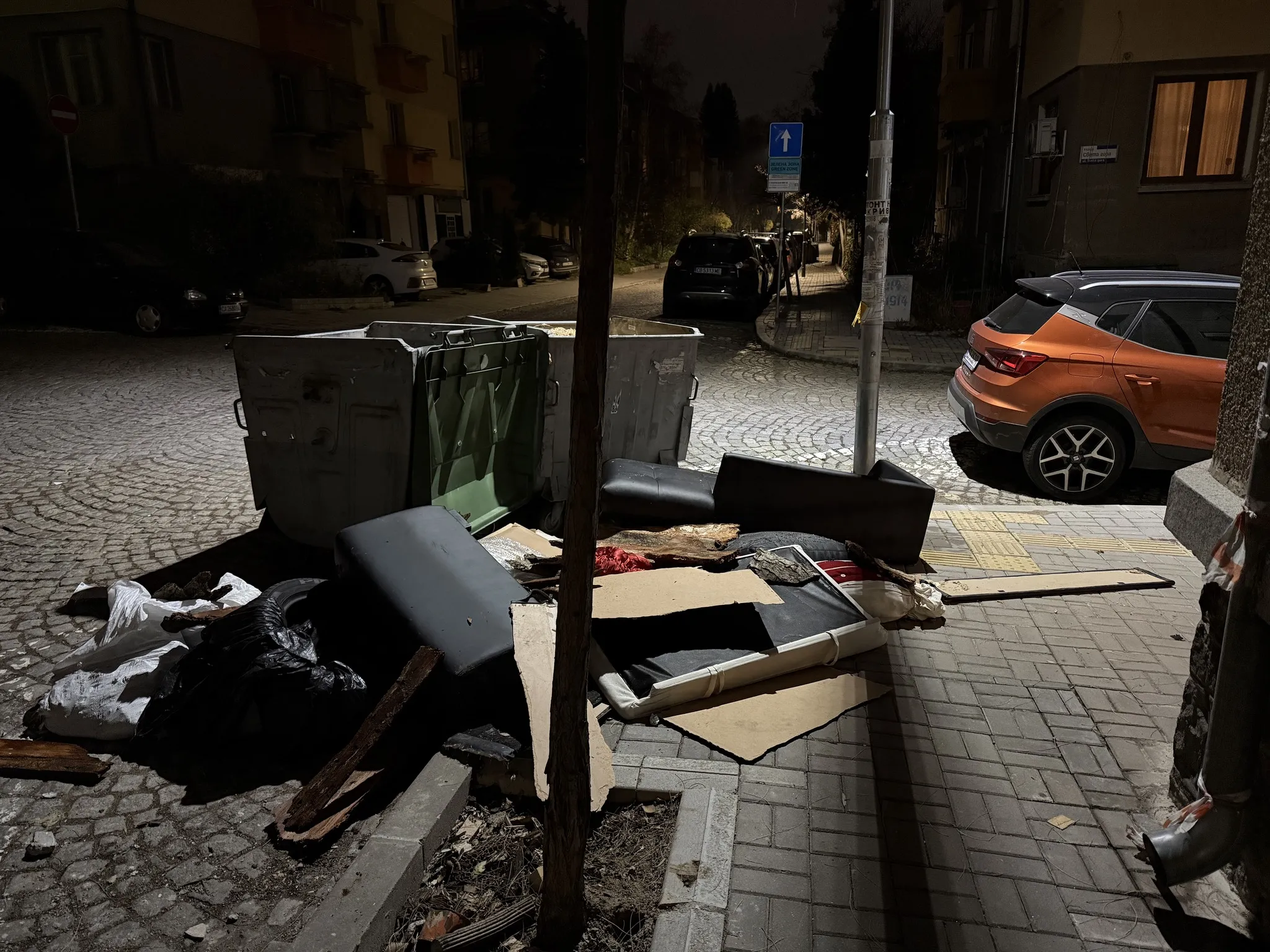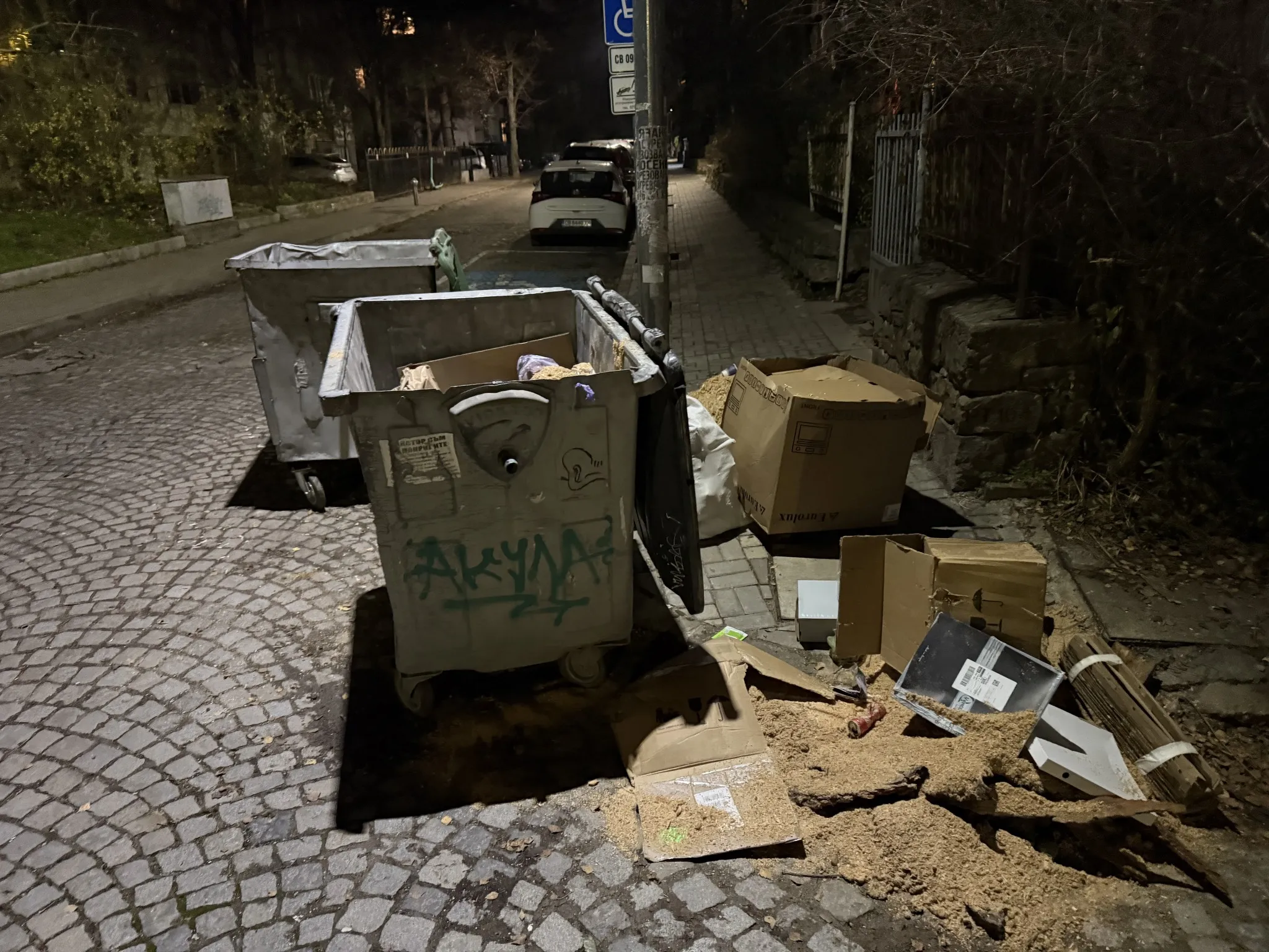 „По ул. Кръстьо Сарафов към 22:20 мина боклукчийски камион с трима човека отзад. Буквално пред мен, на кръстовището с ул. „Янко Софийски войвода“, обърнаха двете кофи настрани и с шепи изсипваха боклуци и стърготини на тротоара. Реших, че стърготините може да задръстят камиона и трябва да ги махнат, ще изсипят кофите и ще съберат след себе си. Колко наивно. Кучетата се подплашиха от шума и побързах да ги подмина. Към следващото кръстовище ме задминаха и на ул. „Света Гора“ ги видях в далечината как отново изхвърлят боклуци от кофите на тротоара“, разказва Здравков.