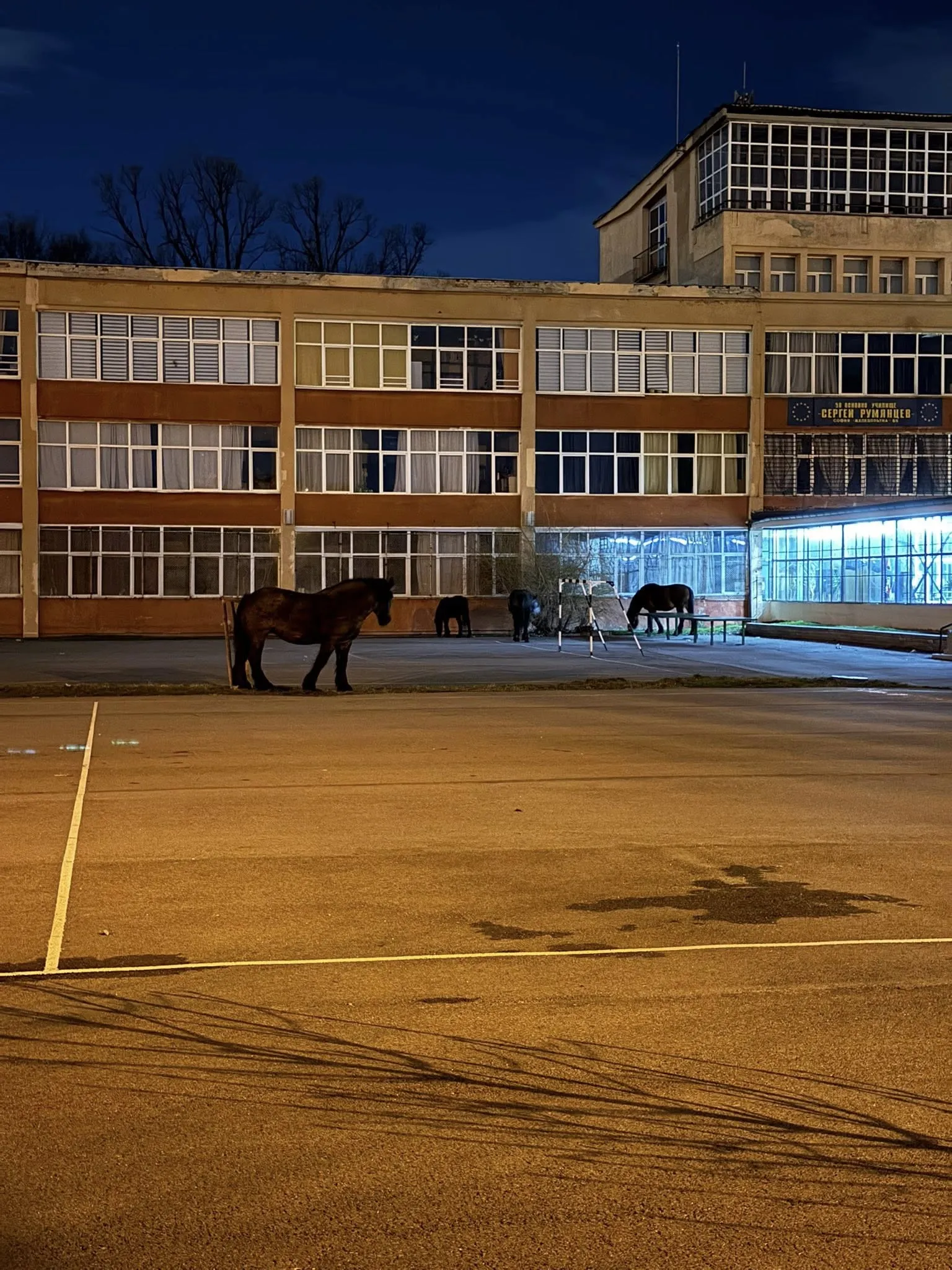 Снимки, публикувани в социалните мрежи, показват животните спокойно пасящи и обикалящи училищния двор – сякаш чакат първия учебен звънец. „От 3 дена всяка вечер към 20:00 - 20:30 засичам в парка или училището тези коне. Доколкото съм наясно е подаван сигнал към 112, но очевидно не е било успешно“, споделя жителка на квартала.