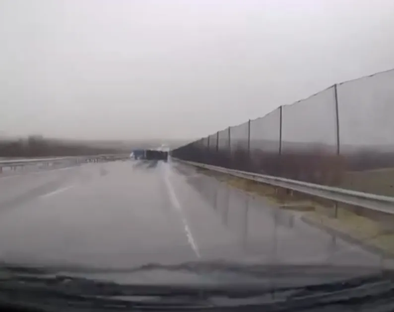 Инцидентът е станал в платното в посока Пловдив на 33-ия километър, в района на димитровградското село Добрич. Осигурен е обходен маршрут, който е следния: п.в. “Димитровград” – път I-8 Хасково – Пловдив. Трафикът се контролира от полицаи. Видео, изпратено на bTV, показва как тежкотоварното превозно средство е запушило всички ленти на аутобана - включително и аварийната.