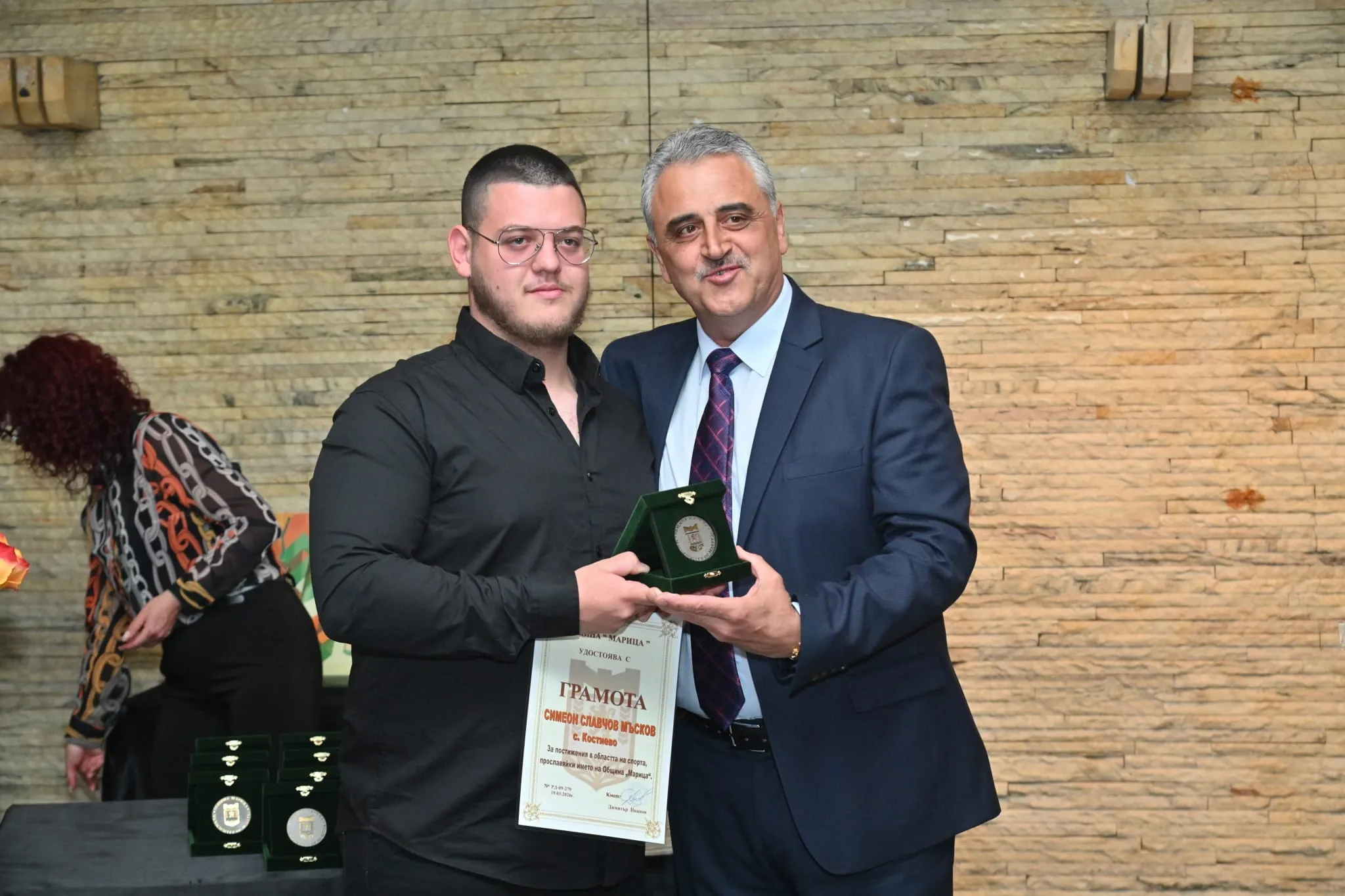Сред отличените бяха млади таланти от различни населени места в общината, които със своите успехи утвърждават доброто име на общността. Димитър Гаджонов от Бенковски е отличен като един от най-перспективните състезатели по кану-каяк в страната, с впечатляващи постижения на национално ниво. От Калековец Валентин Атанасов завоюва първо място на Държавното първенство по борба, а Виктория Илиева впечатлява с изявите си в музикалното изкуство и участието си на национални и международни сцени. Костиево също има своите достойни представители – Емилия Тодорова с призови класирания в състезания по кану-каяк, Теодора Тодорова като победител в републикански шампионат, както и Симеон Мъсков, донесъл отличия от международни турнири по вдигане на тежести. Илия Петров от Крислово се нарежда сред най-добрите, след като става шампион в държавно първенство по вдигане на тежести. От Радиново Никола Левенов печели златен медал на международен турнир по бойни изкуства, а Станислава Аскерлакова заслужено носи титлата републикански шампион по борба. Рогош също дава повод за гордост – Теодора Ганчева с успехите си в художествената гимнастика, Милена Цанкова като национален шампион по карате и най-малката сред отличените – Анастасия Ненова, която впечатлява със своя изключителен музикален талант. Скутаре се отличава с постиженията на Дарина Нанева – европейски шампион по волейбол, а Георги Бакърджиев и Георги Николов постигат успехи в кану-каяка и карате. От Царацово Виктор Профиров прославя общината като световен и европейски шампион по кикбокс, а Георги Димов от Труд се нарежда сред призьорите в републикански състезания. Сред отличените е и ХК „Труд", който печели републиканската купа за момчета до 12 години и затвърждава позициите на общината в колективните спортове.