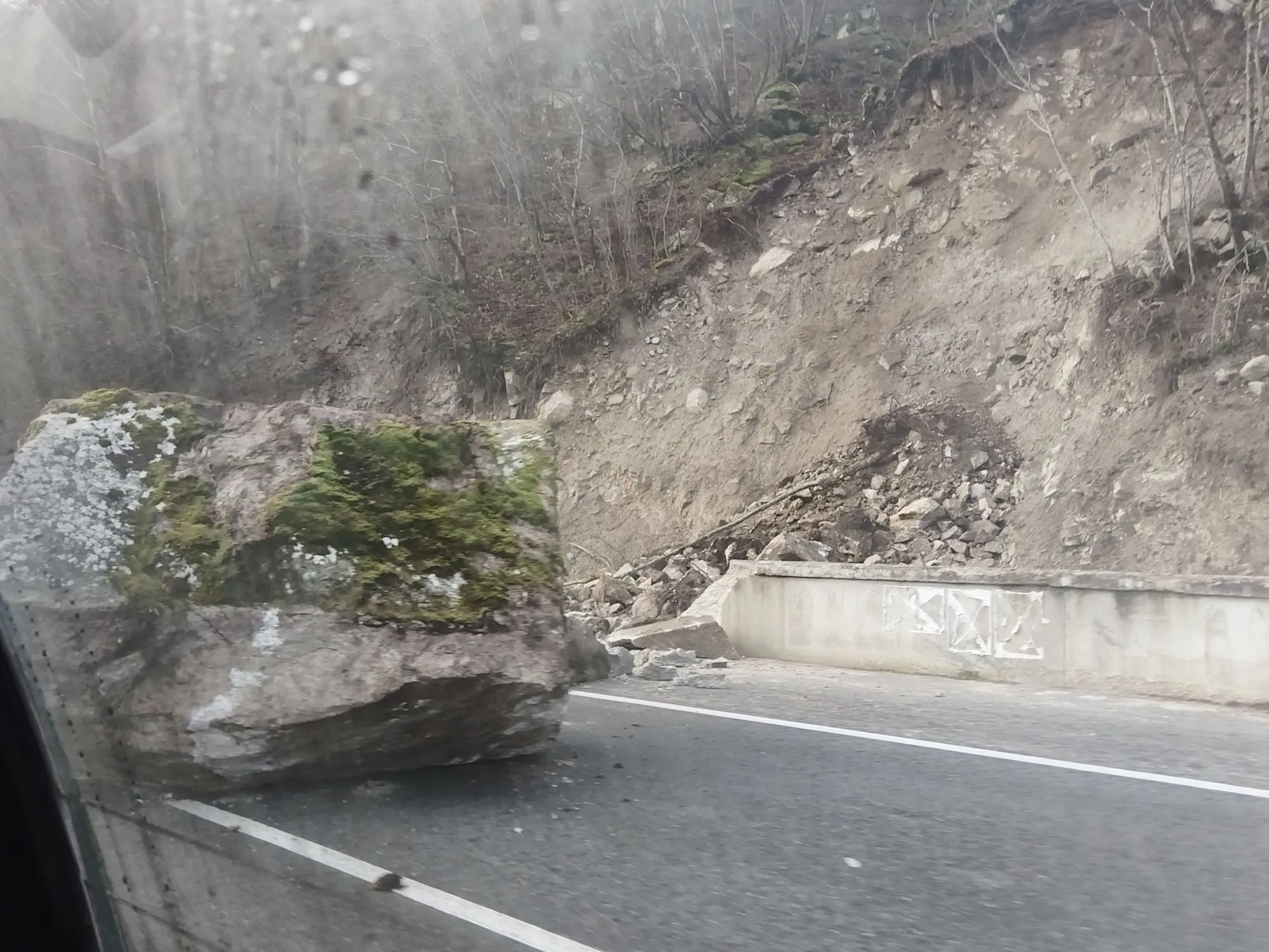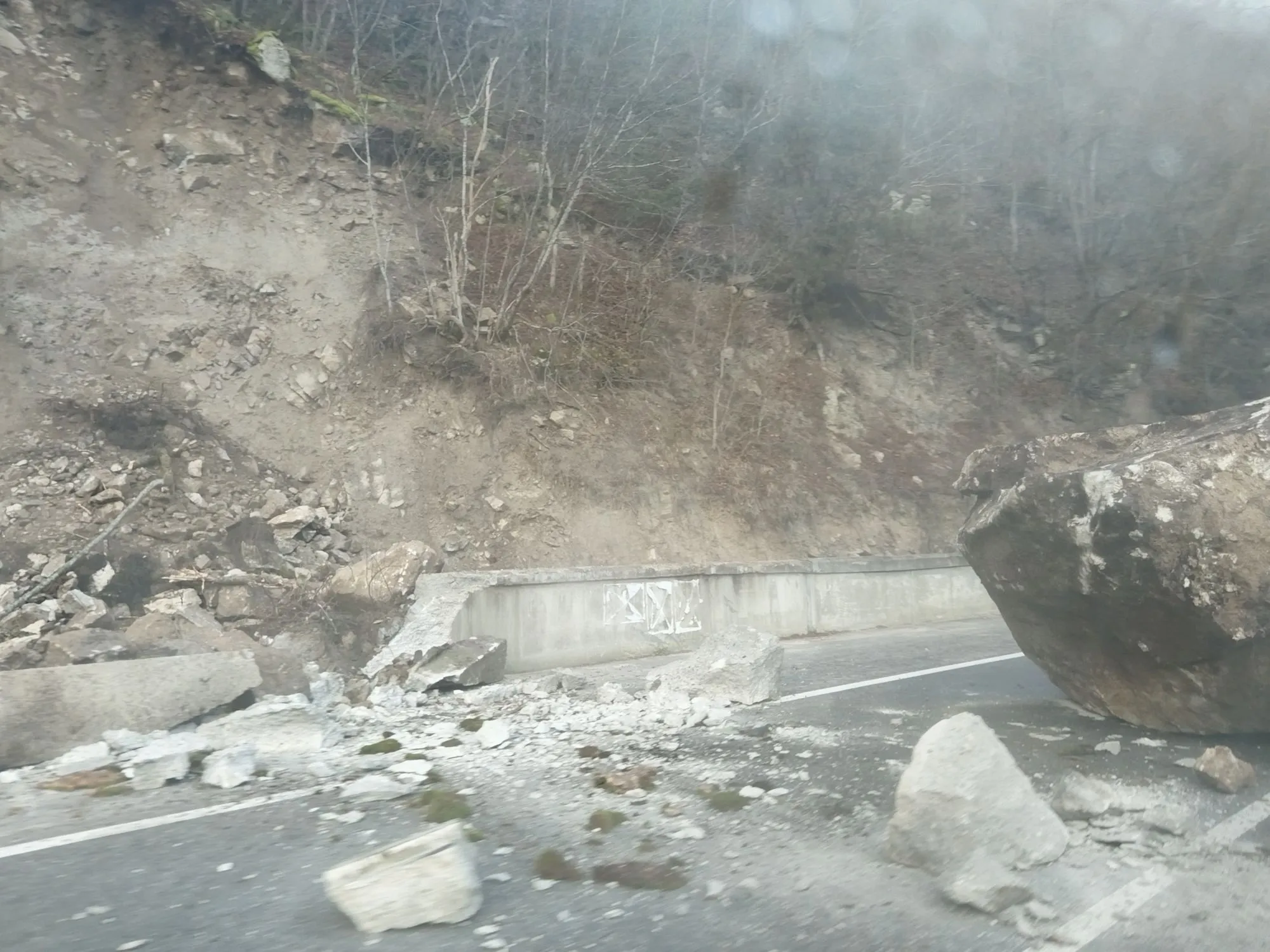По снимки, разпространени от преминаващи шофьори, се вижда огромен каменен блок, паднал директно върху пътното платно. Около него има и множество по-малки камъни и пръст, които са се откъснали от стръмния скат.