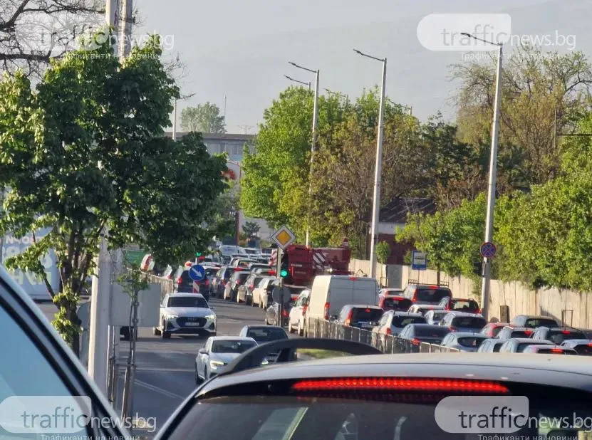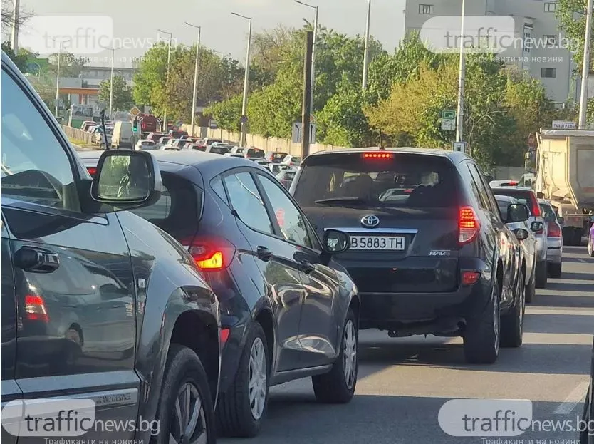Километрична е тапа обхвана и надлез „Родопи“, като колоната от автомобили в ранния сутрешен трафик е достигнала чак до бул. „Санкт Петербург“.