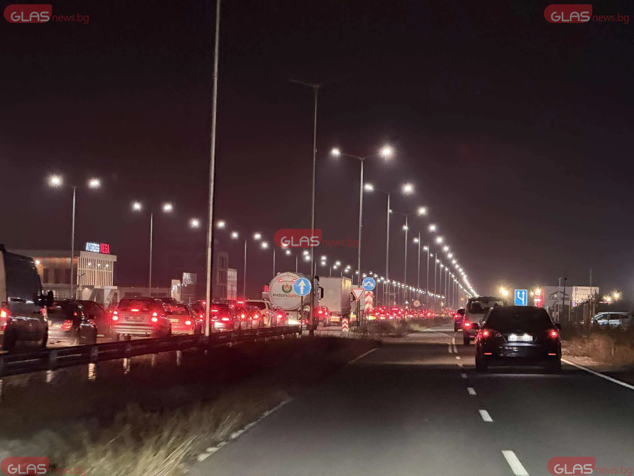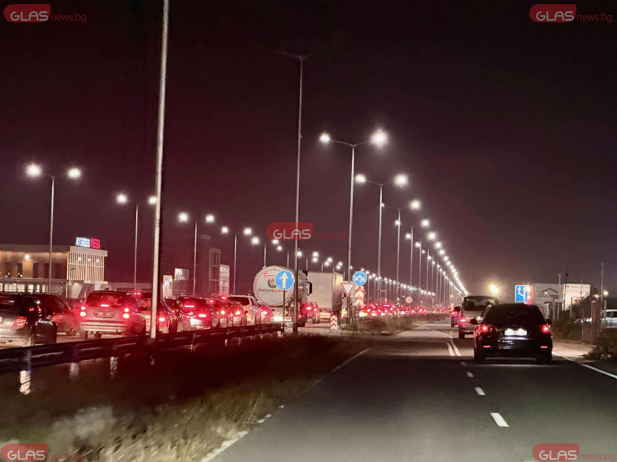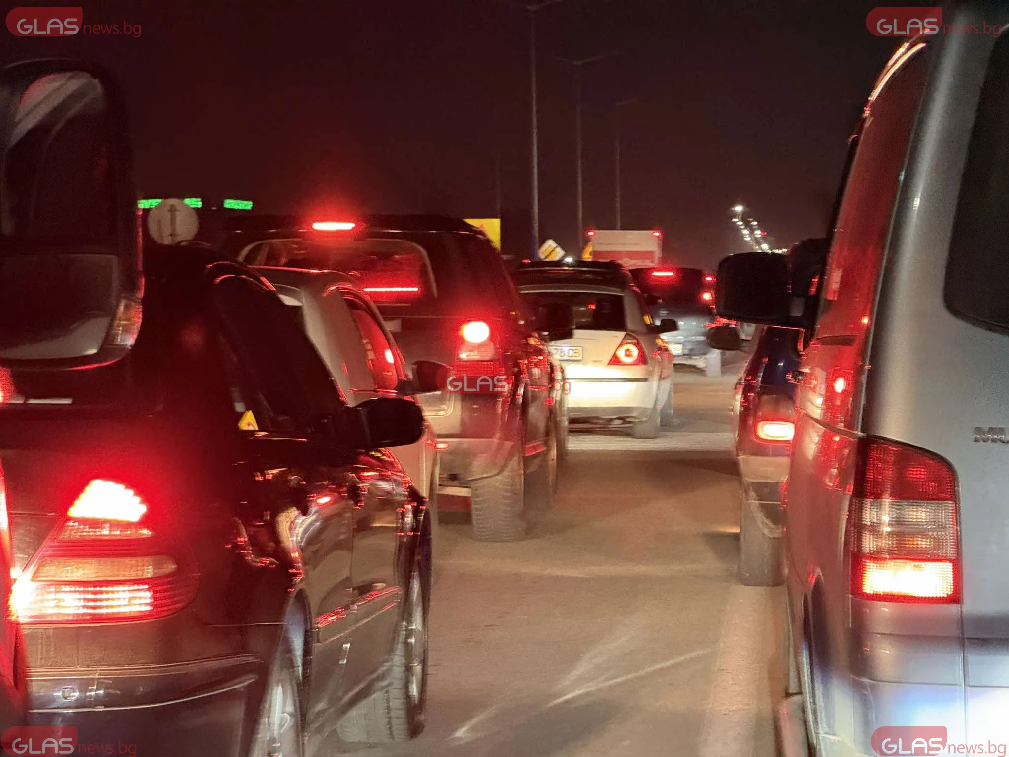 Колоната от автомобили вече надхвърля пет километра и продължава да расте, тъй като движението практически е спряло.