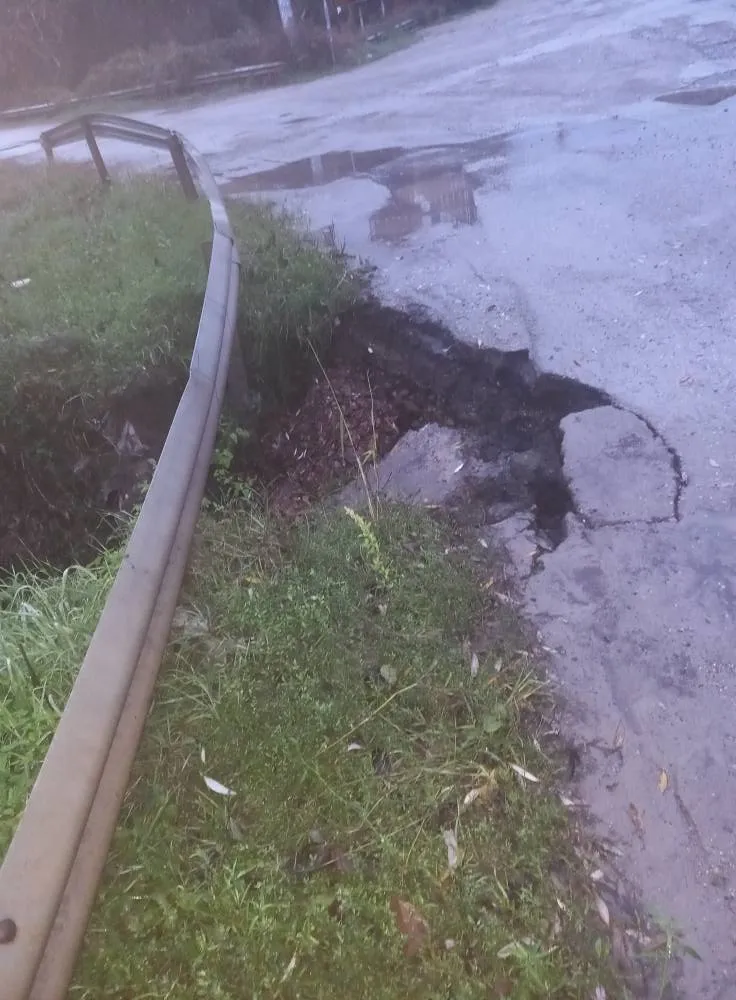 На място се вижда оформена дълбока ерозионна яма, която е подкопала асфалта и огражденията. Жителите настояват за спешна намеса, за да бъде укрепен участъкът и да се предотврати по-сериозно срутване.