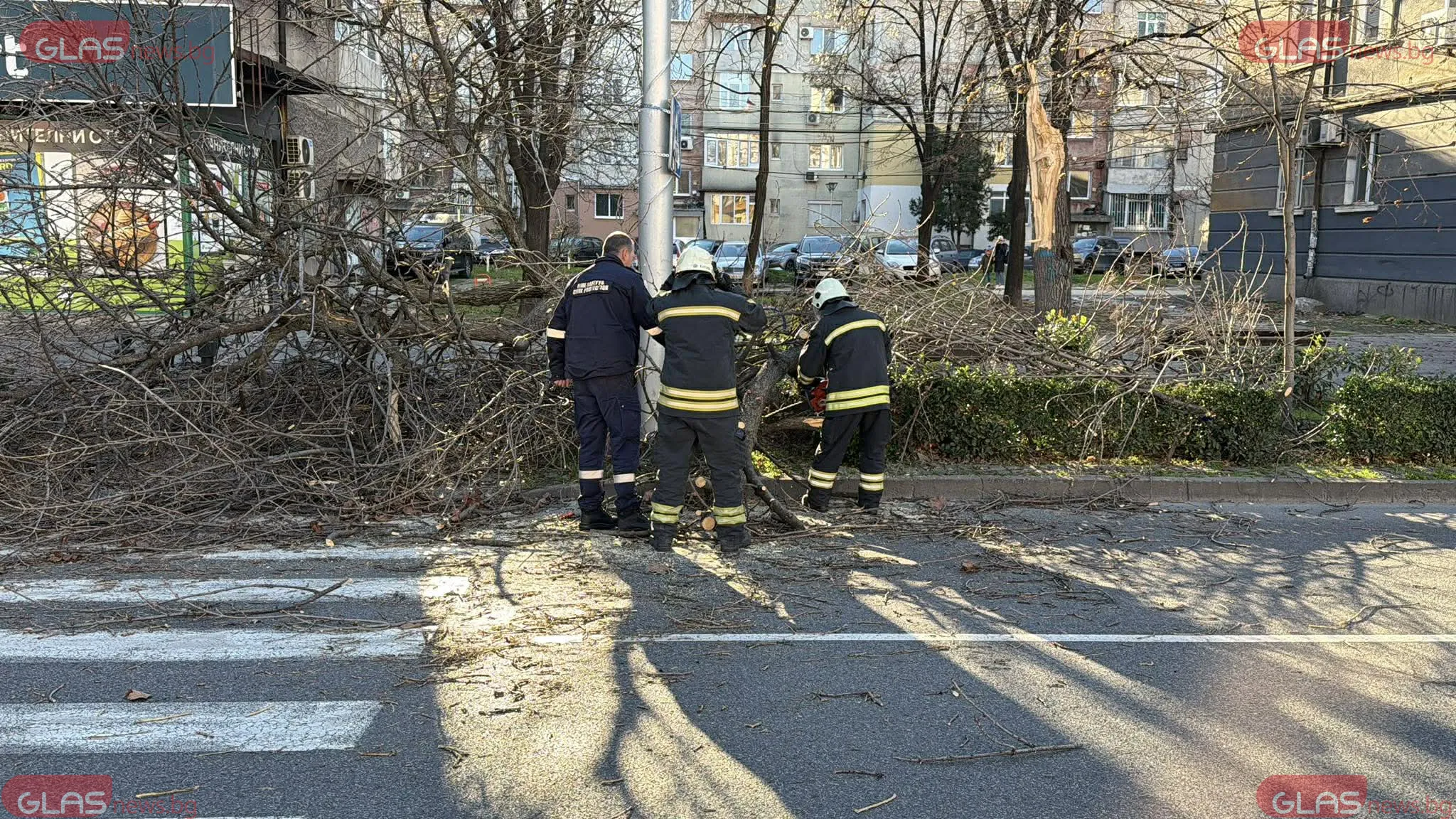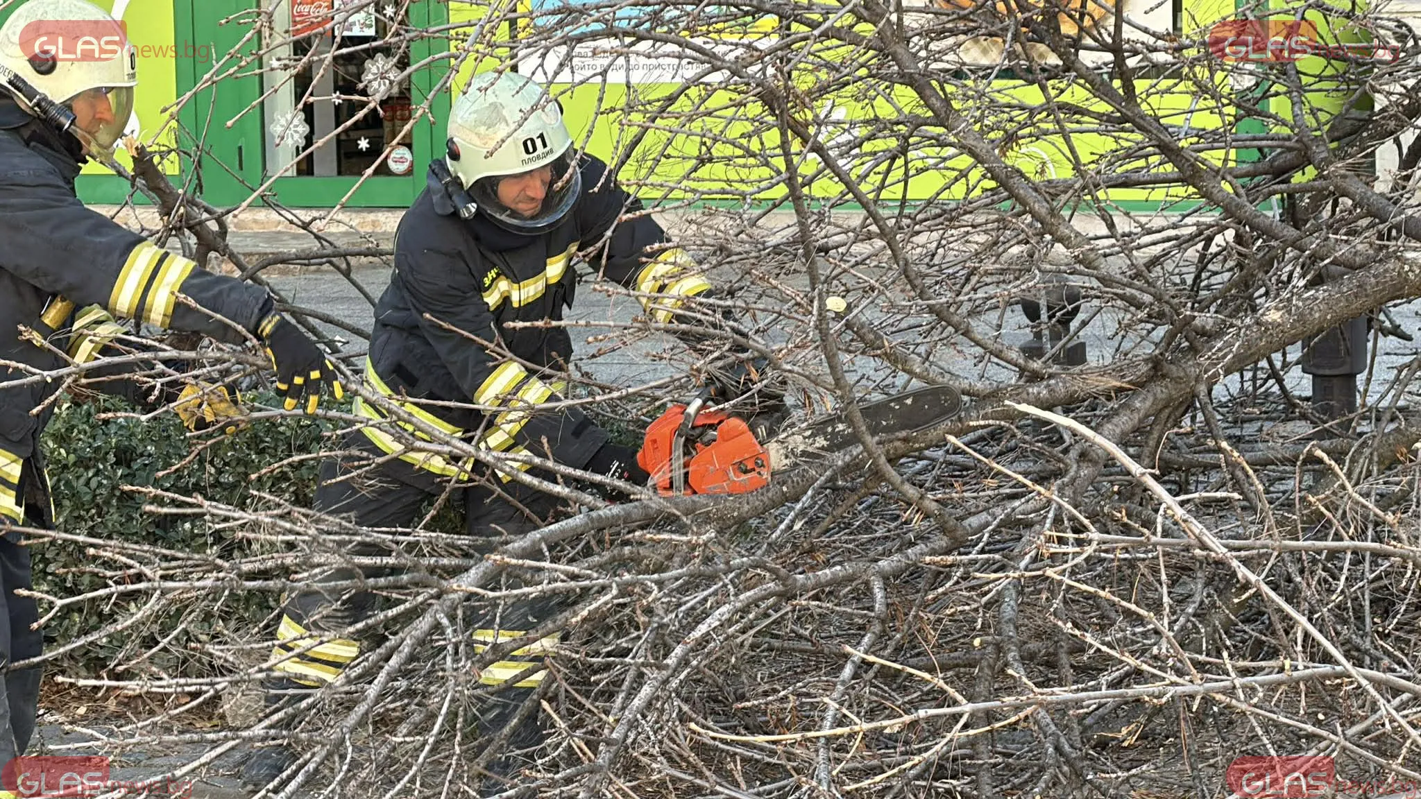 На място е изпратен екип на Пожарната, който работи по отстраняването на падналите клони, видя GlasNews.bg.