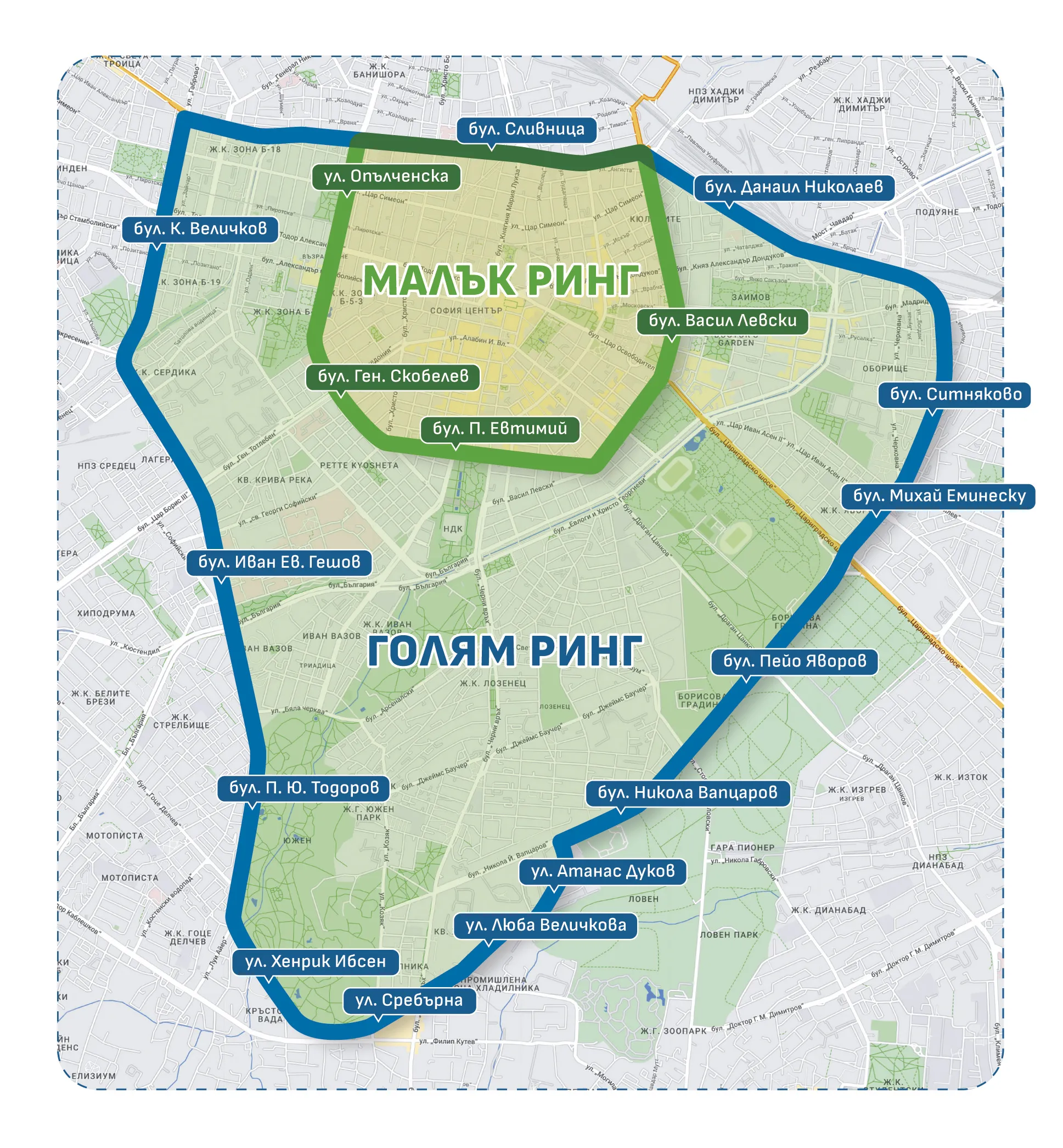 „Голям ринг“, е заключена между бул. „Сливница“, бул. „Данаил Николаев”, бул. „Ситняково“, бул. „Михай Еминеску“, бул. „П. Яворов“, бул. „Никола Й. Вапцаров“, ул. „Атанас Дуков“, ул. „Люба Величкова“, ул. „Сребърна“, бул. „Х. Ибсен“, бул. „П. Ю. Тодоров“, бул. „И. Е. Гешов“ и бул. „К. Величков“