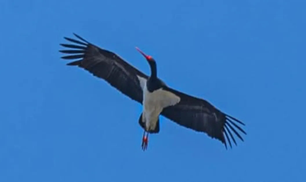 Черен щъркел е бил забелязан край язовир "Копринка". Птицата е заснета по поречието на река Тунджа, където от няколко години има сигнали за цяла колония от тези редки птици, съобщи Нова.