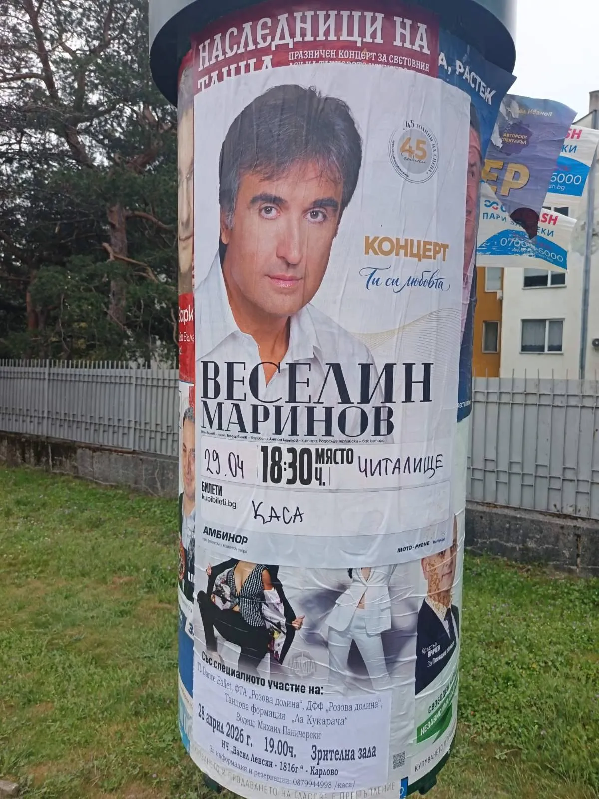 Кой е физическият извършител на тази акция остава неясно, но ефектът е налице - вместо позитивна реклама, пролетното турне на певеца в региона започва с горчив привкус за карловската публика.