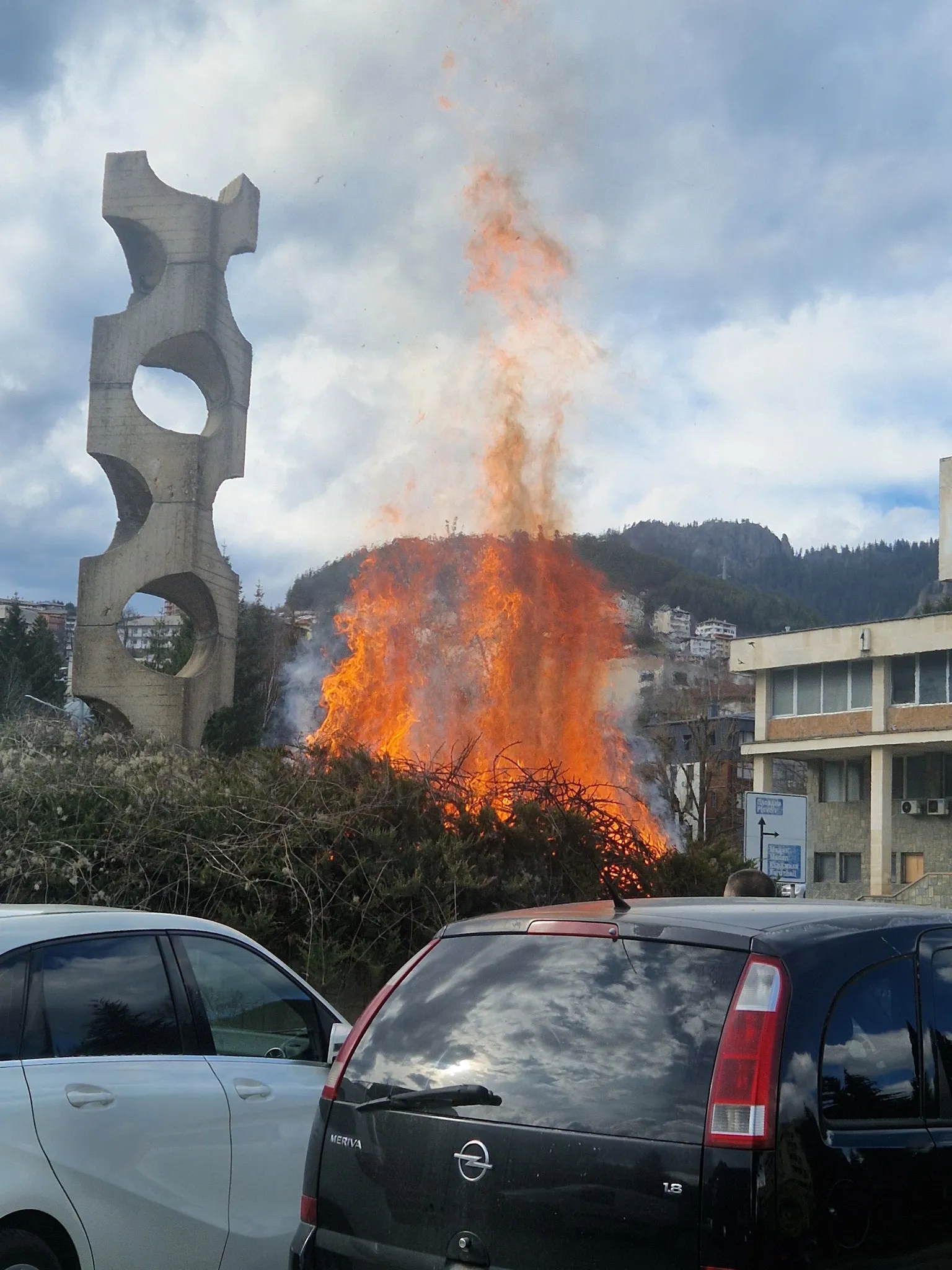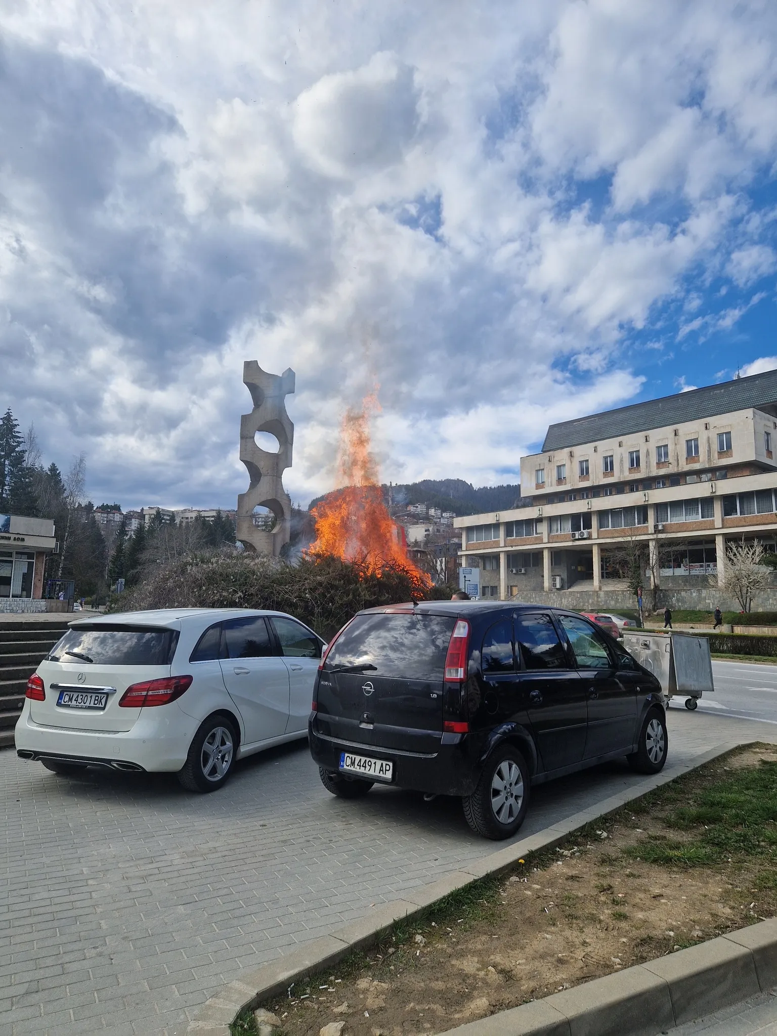 Ситуацията бързо ескалирала – огънят се издигал на няколко метра височина, а в непосредствена близост имало паркирани автомобили, което създало реална опасност от по-сериозен инцидент.