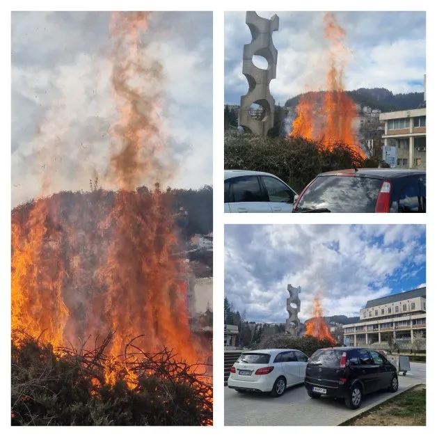 Ситуацията бързо ескалирала – огънят се издигал на няколко метра височина, а в непосредствена близост имало паркирани автомобили, което създало реална опасност от по-сериозен инцидент.