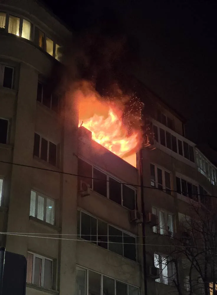 По първоначална информация районът около жилищната сграда е отцепен, като на място са изпратени четири екипа на пожарната, два полицейски автомобила и екип на Спешна помощ.