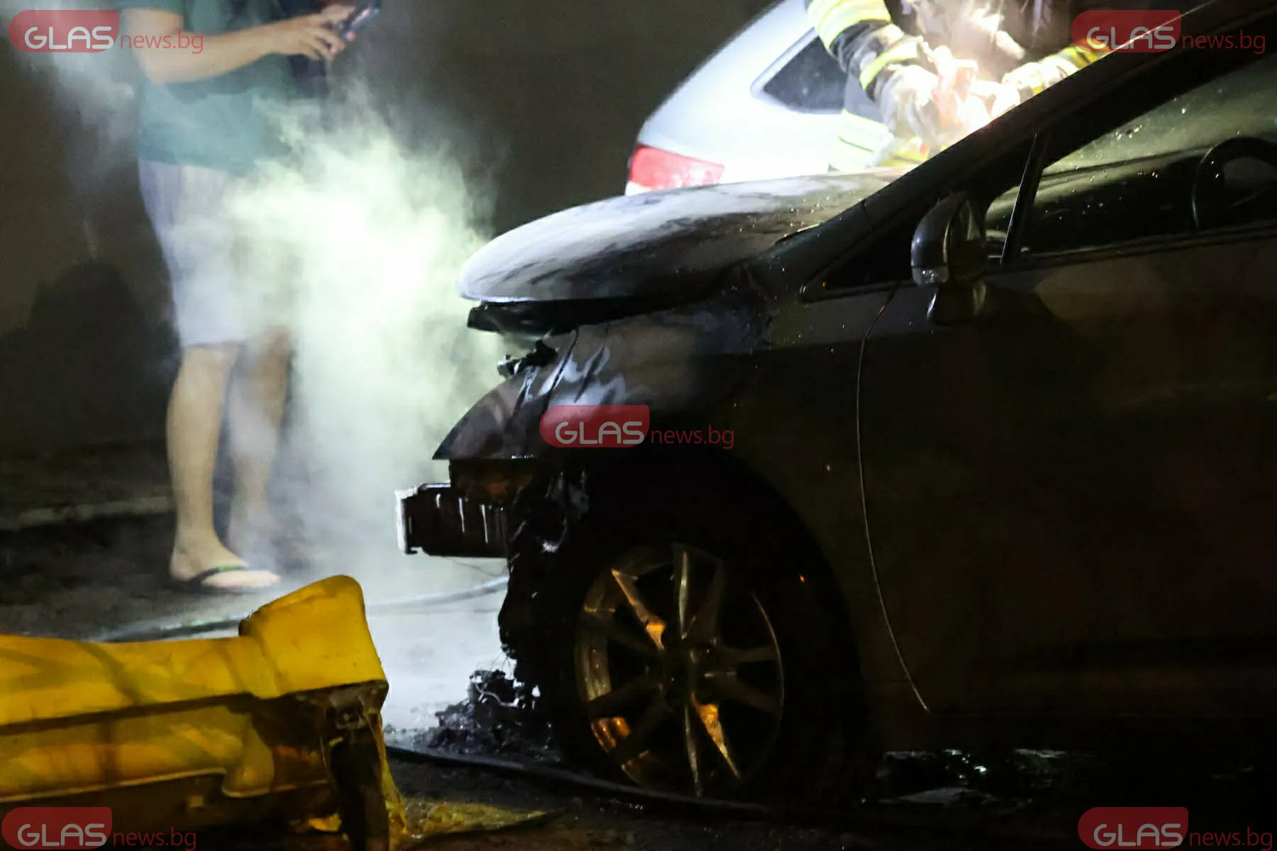 На място незабавно са пристигнали екипи на полицията и пожарната, които са овладели ситуацията и са предотвратили разпространението на пожара към други автомобили или сгради в района.