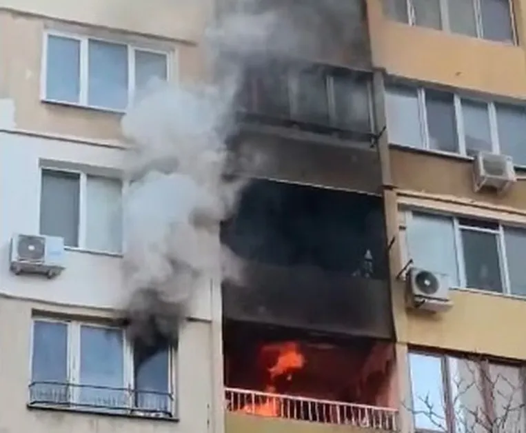 Пламъци погълнаха апартамент в София – гъст дим се изви над сградата ВИДЕО