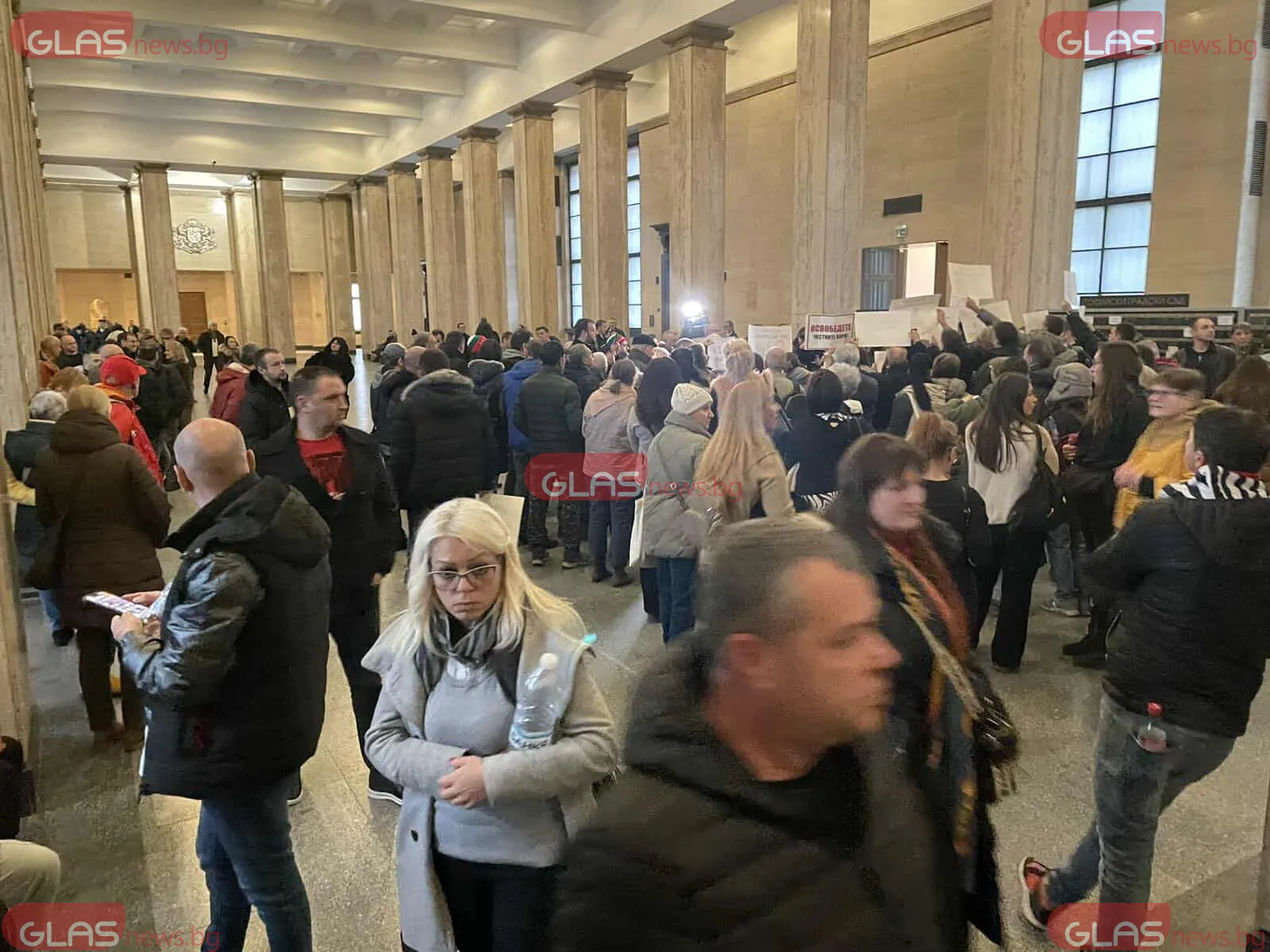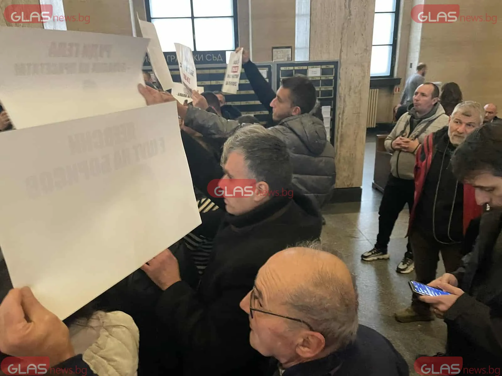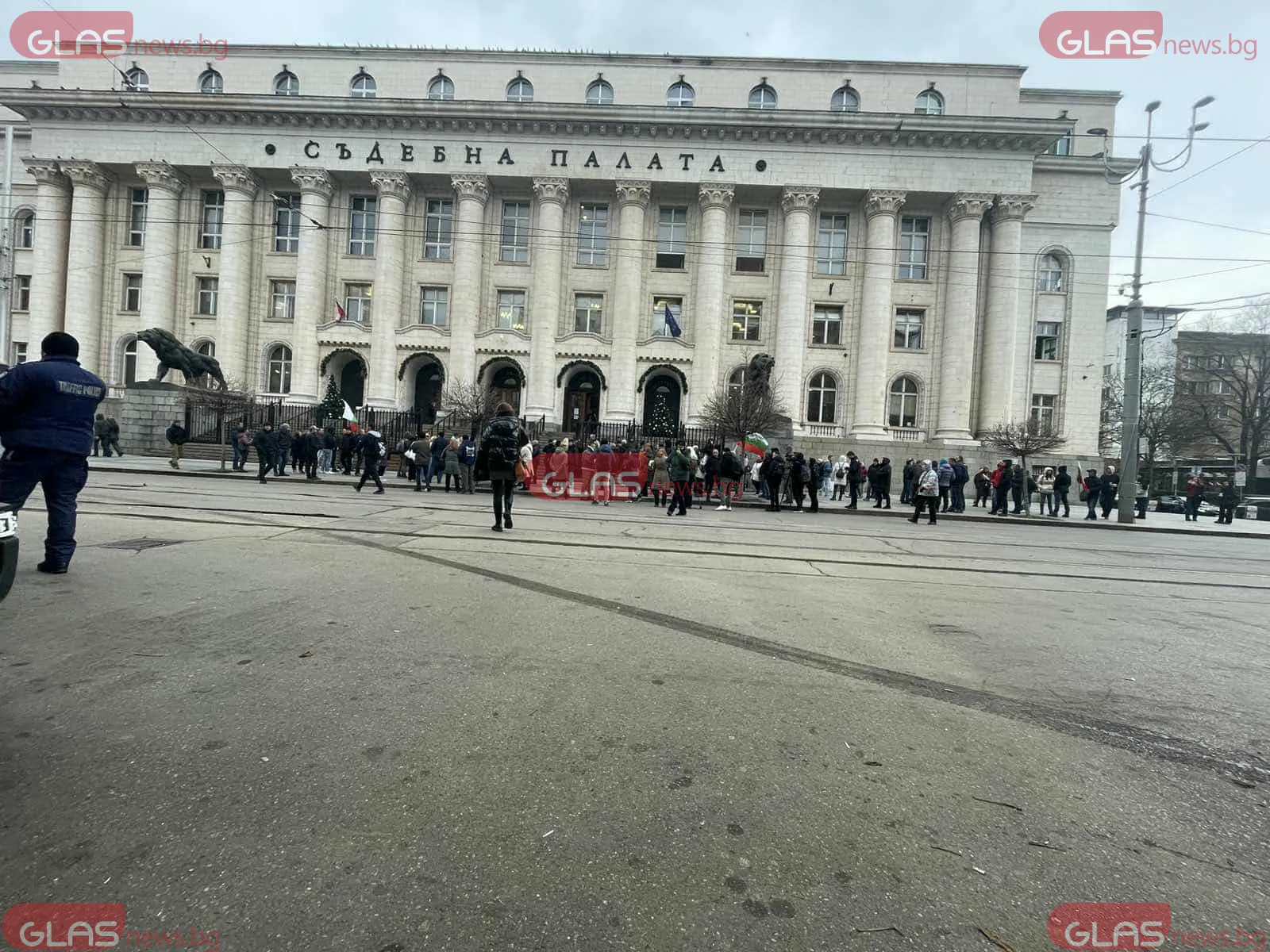 Отвън, пред сградата, също има група хора, които подкрепят действията на протестиращите вътре и заявяват готовност да останат до финалното съдебно решение.