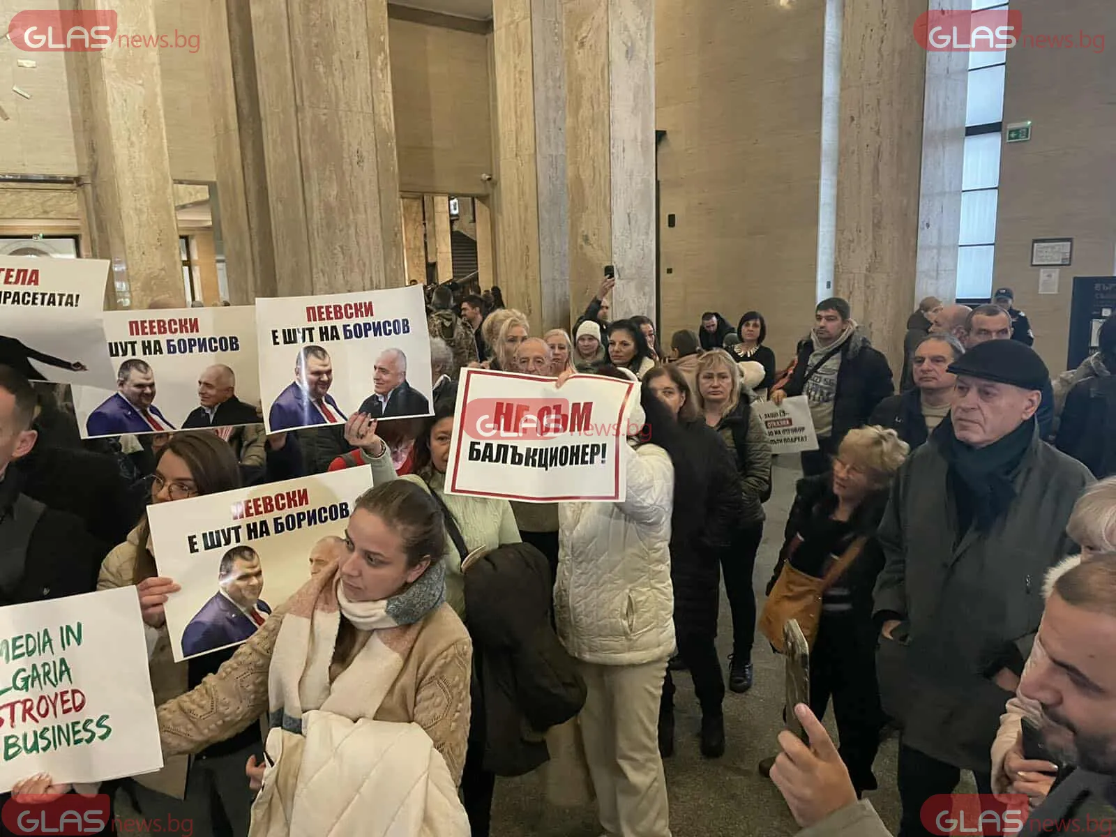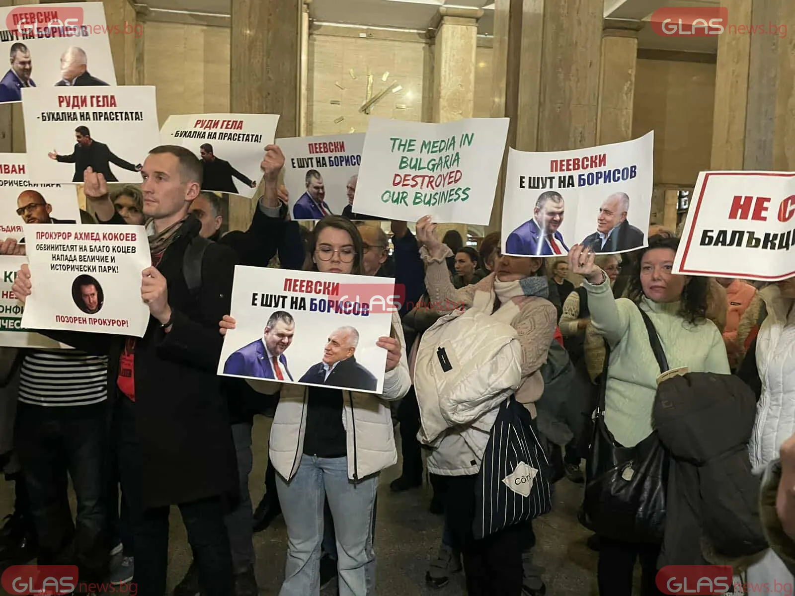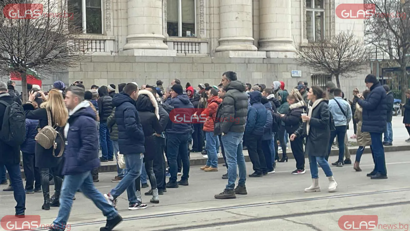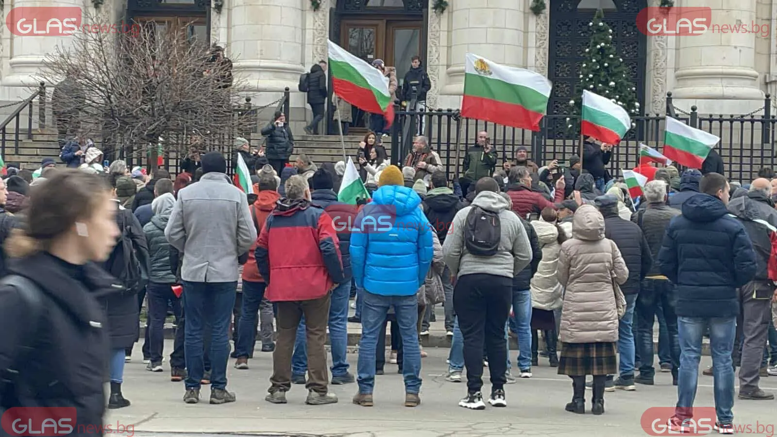 Отвън, пред сградата, също има група хора, които подкрепят действията на протестиращите вътре и заявяват готовност да останат до финалното съдебно решение.
