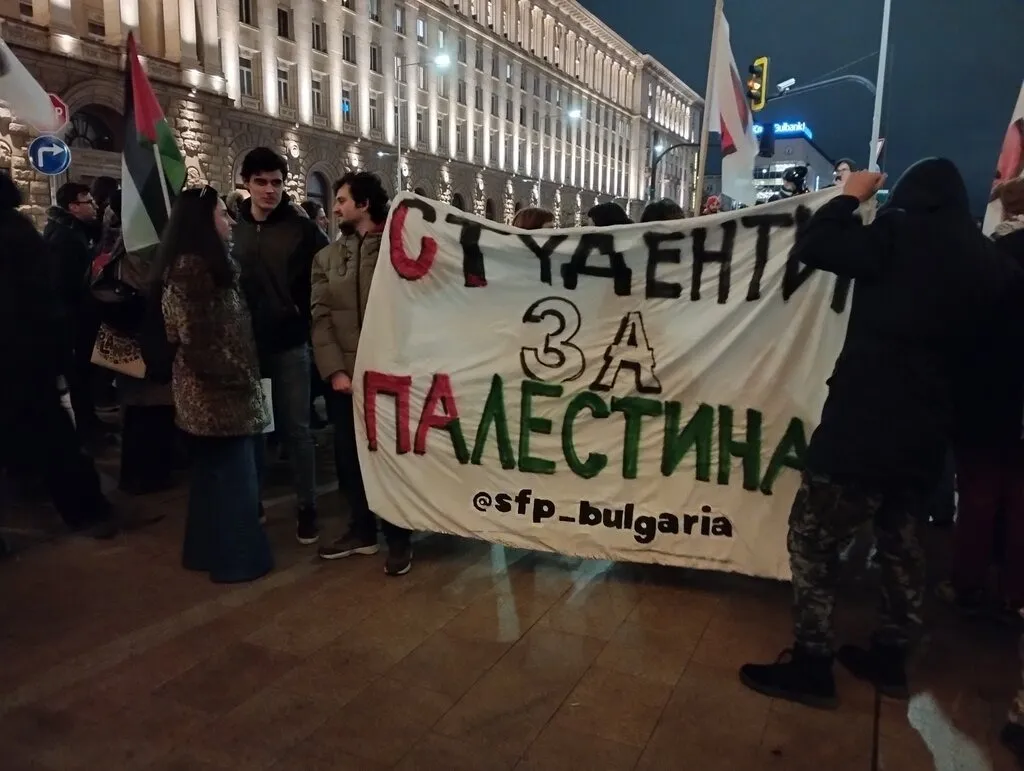 Виждаха се плакати с надписи "Минеаполис до Газа, Тръмп е зараза" и "България отново на грешна страна", предава репортер на БНР.